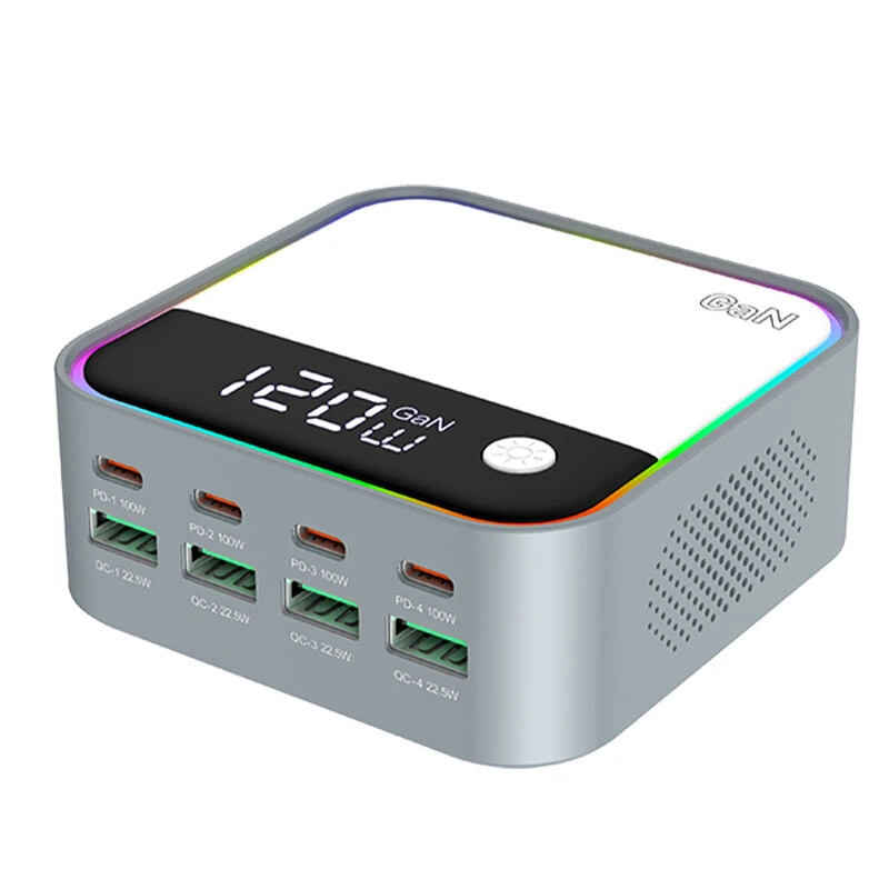 사양:모델WLX-M8색깔은크기95*95*38mm인터페이스4USB-A+4USB-C입력AC100-240V 50-60Hz출력PD-1/PD-2/PD-3/PD-4:100WPD-(1+2/1+3/1+4/2+3/2+4/3+4):60W+60WPD-(1+2+3/1+3+4/1+2+4/2+3+4):40W+40W+40WPD-(1+2+3+4):30W+30W+30W+30WQC-1/QC-2/QC-3/QC-4:22.5WQC-(1+3/1+4/2+3/2+4):22.5W+22.5WQC-(1+3+4/2+3+4/3+1+2/4+1+2):22.5W+7.5W+7.5WQC-(1+2+3+4):7.5W+7.5W+7.5W+7.5W프로토콜PD3.0/2.0 PPS QC3.0/2.0 SCP FCP AFC Apple2.4 BC1.2유형유럽 플러그/미국 플러그력120W특징: 1. 높은 전력 출력: WLX-M8은 최대 120W의 전력 출력을 제공하여 여러 장치를 동시에 빠르고 효율적으로 충전할 수 있습니다.2. 다목적 충전 포트: 4개의 USB-A 포트와 4개의 USB-C 포트가 장착된 WLX-M8은 구형 기기와 현대 기기 모두에 대해 폭넓은 호환성을 제공합니다.3. 다양한 충전 모드: WLX-M8은 PD3.0/2.0,PPS,QC3.0/2.0,SCP,FCP,AFC,Apple2.4 및 BC1.2를 포함한 다양한 충전 프로토콜을 지원하여 서로 다른 장치에 대해 최적화된 충전을 가능하게 합니다.4. 컴팩트하고 긴 수명의 디자인: 95*95*38mm의 콤팩트한 크기를 가진 WLX-M8은 쉽게 휴대할 수 있으며 어떤 책상이나 작업 공간에도 잘 맞습니다. 또한, 고품질 재료로 제작되어 오랜 사용이 가능합니다.5. 다중 플러그 옵션: WLX-M8은 EU 플러그 및 US 플러그 옵션으로 제공되어 전 세계의 다양한 전원 콘센트와의 호환성을 보장합니다.패키지에 포함된 것:1x WLX-M8 데스크탑 충전기 스테이션