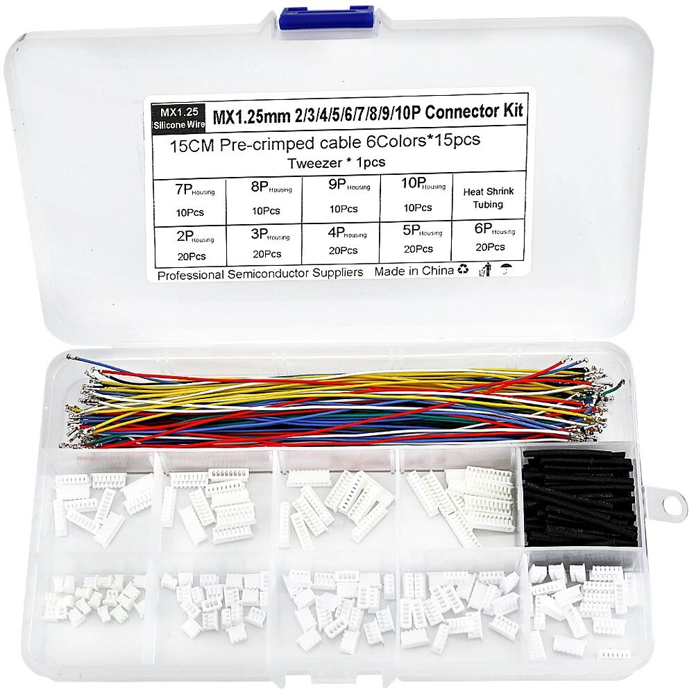 المواصفات:نوع الموصل: موصل دبوس ذكر MX1.25MM مع التواءطول السلك: 15CMنوع السلك: سلك سيليكون، مسبق الضغطألوان الكابل: 6 ألوان (أحمر، أصفر، أخضر، أزرق، أسود، أبيض)خيارات الدبابيس: 2P/3P/4P/5P/6P/7P/8P/9P/10Pالكمية: إجمالي 200 كابلالإكسسوارات: تشمل ملاقط و20 أنبوب انكماش حراريأبعاد صندوق التخزين: 173mm × 96mm × 23mmإجمالي الوزن: 100 جراممقاومة الحرارة: بناء كابل عالي الحرارةالميزات:1. خيارات رقم التعريف الشخصي الشاملةيتضمن الموصلات التي تتراوح من 2P إلى 10P، مما يضمن التوافق مع مختلف احتياجات التطبيقات. مثالي للنماذج الأولية والتجارب ومشاريع التجميع.2. مسبق الثني وجاهز للاستخدامتساعد الأسلاك المسبقة التقلص على تبسيط عملية الاتصال واللحام، مما يوفر لك وقت إعداد ثمين في مشاريعك الإلكترونية.3. تصميم صندوق تخزين منظمحافظة بلاستيكية متينة تحتوي على ح جرز فردية لتسهيل فرز واسترجاع الموصلات والكابلات أثناء الاستخدام. تحافظ على نظافة وتنظيم مساحة عملك.4. كابلات سيليكون عالية الحرارةمصنوع من أسلاك سيليكون عالية الجودة مصممة لتحمل درجات حرارة التشغيل المرتفعة، مما يضمن أداءً مستقرًا في البيئات الصعبة.5. مجموعة ملحقات كاملةتتضمن الملقط الإضافي وأنابيب الانكماش الحراري لتوفير حل كامل، مما يساعد في التجميع الدقيق وتأمين اتصالات الكابل.الحزمة تشمل:20 × 2P MX1.25MM الموصلات20 × 3P MX1.25MM موصلات20 × 4P MX1.25MM موصلات20 × 5P MX1.25MM الموصلات20 x 6P MX1.25MM موصلات10 × 7P MX1.25MM موصلات10 × 8P MX1.25MM موصلات10x 9P MX1.25MM موصلات10 × 10P MX1.25MM موصلات200 × أسلاك سيليكون مسبقة التقلص (6 ألوان، 15 سم لكل منها)1 x ملقط20 x أنابيب انكماش حراري