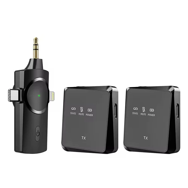 تخصيص:العلامة التجارية: VIMAIالموديل: AP009-1/AP009-2نطاق التردد: 2.4 GHzتيار الشحن: ≤ 220mAمدة الشحن: ≤ 170 دقيقةسعة البطارية: 400mAhوقت العمل: 26 ساعةنوع الميكروفون: ميكروفون إلكتريتحساسية الميكروفون: -35dBSNR للميكروفون: 64dB(A)نطاق تردد الميكروفون: 20-20 كيلو هرتزالهوائي: سيراميكتأخير النقل: 15 مللي ثانيةألوان أضواء المؤشرات: أحمر، أخضر، أزرقنوع الشحن: USB Type-Cوزن الوحدة: 26.3 جرامأبعاد الوحدة: 46*41*22ممالميزات:ميكروفون لاسلكي منخفض الكمون مناسب لنقل الصوت في الوقت الحقيقي.2. التقاط الصوت بزاوية 360° مع ميكروفون سيليكون رقمي عالي الحساسية يغطي نطاق التردد 20-20KHz، مما يضمن التقاط الصوت بوضوح.3. تقليل الضوضاء الذكي مع تقنية DSP لإلغاء الضوضاء المحيطة لتحسين جودة الصوت.4. الاقتران التلقائي لسهولة الاستخدام - فقط قم بتوصيل الجهاز لاستعلام الاتصال الفوري.5. مستقبل 3 في 1 مع توافق واسع لواجهات Type-C و iP و الكمبيوتر والكاميرا.6. مدة عمل طويلة، تصل إلى 26 ساعة عند الشحن الكامل.يشمل الحزمة:1 × مرسل / 2 × مرسل (اختياري)1 × Receiver 3 في 1 (Type-C، iP، 3.5mm Audio)
