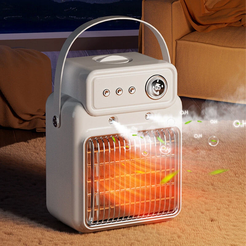 사양:이름: 책상 전기 히터전원: 1200W색: White플러그: 유럽 연합 가습: 미스트 스프레이 가습온도 설정: 세 가지 수준히팅 엘리먼트: 그래핀안전 기능: 과열 보호,전복 차단제어: 터치 버튼이 있는 디지털 디스플레이인증서: CE, RoHS치수: 29x15.5x11.5cm무게: 1.5 kg특징:- 효율적인 그래핀 난방: 첨단 그래핀 난방 기술로 즉각적인 따뜻함을 경험하고 공간 전체에 걸쳐 빠른 온도 상승과 일관된 열 분포를 보장합니다.- 여러 온도 수준: 세 가지 조절 가능한 온도 설정으로 편안함을 맞춤 조정하여 필요에 따라 온화한, 보통의, 고온 간에 원활하게 전환할 수 있습니다.- 통합 가습기: 내장된 미스트 분무 가습기는 최적의 공기 습도를 유지하여 건조함을 방지하고 더 건강한 피부를 촉진합니다. 이는 건조한 겨울 환경에서 사용하기에 이상적입니다.- 360° 열 순환: 360도 순환 시스템으로 설계된 이 히터는 방의 구석구석을 효과적으로 따뜻하게 하여 포괄적이고 고른 열 분포를 보장합니다.- 강력한 안전 메커니즘: 과열 보호, 전도 시 자동 차단 및 난연성 외관 등 여러 안전 기능이 장착되어 있어 항상 안심하고 안전하게 작동할 수 있습니다.포함된 패키지:내장된 가습기가 있는 히터 1개1 x 전원 코드1 x 사용자 매뉴얼1 x 물 충전 뚜껑