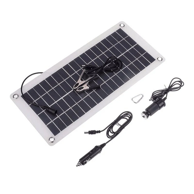 Spécifications:MatérielCellule en silicium monocristallinPuissance optimale [Pmax]10WTension à circuit ouvert [Voc]21V&5VTension de fonctionnement optimale [Vmp]18VCourant de fonctionnement optimal [Imp]550mACourant de court-circuit [Isc]560mASortie USB5V 2ATaille435*200*2.5mmSTCIrradiance 1000W/m2, T=25℃, AM=1.5Poids net0.75kgFonctionnalités:1. Utilisé pour charger un téléphone portable, un lecteur MP3, une tablette ou tout autre appareil rechargeable via USB.2.Port USB femelle double, chargez facilement votre appareil via un câble de charge USB.3. Vous pouvez placer le panneau au soleil et l'utiliser pour charger directement votre appareil.4. Idéal pour le cyclisme en plein air, l'escalade, la randonnée, le camping, les voyages, etc.Le package comprend:1 x Panneau Solaire de 10W4 x Ventouses2 x Boucle d'escalade1 x Câble d'allumeur1 x Pince crocodile