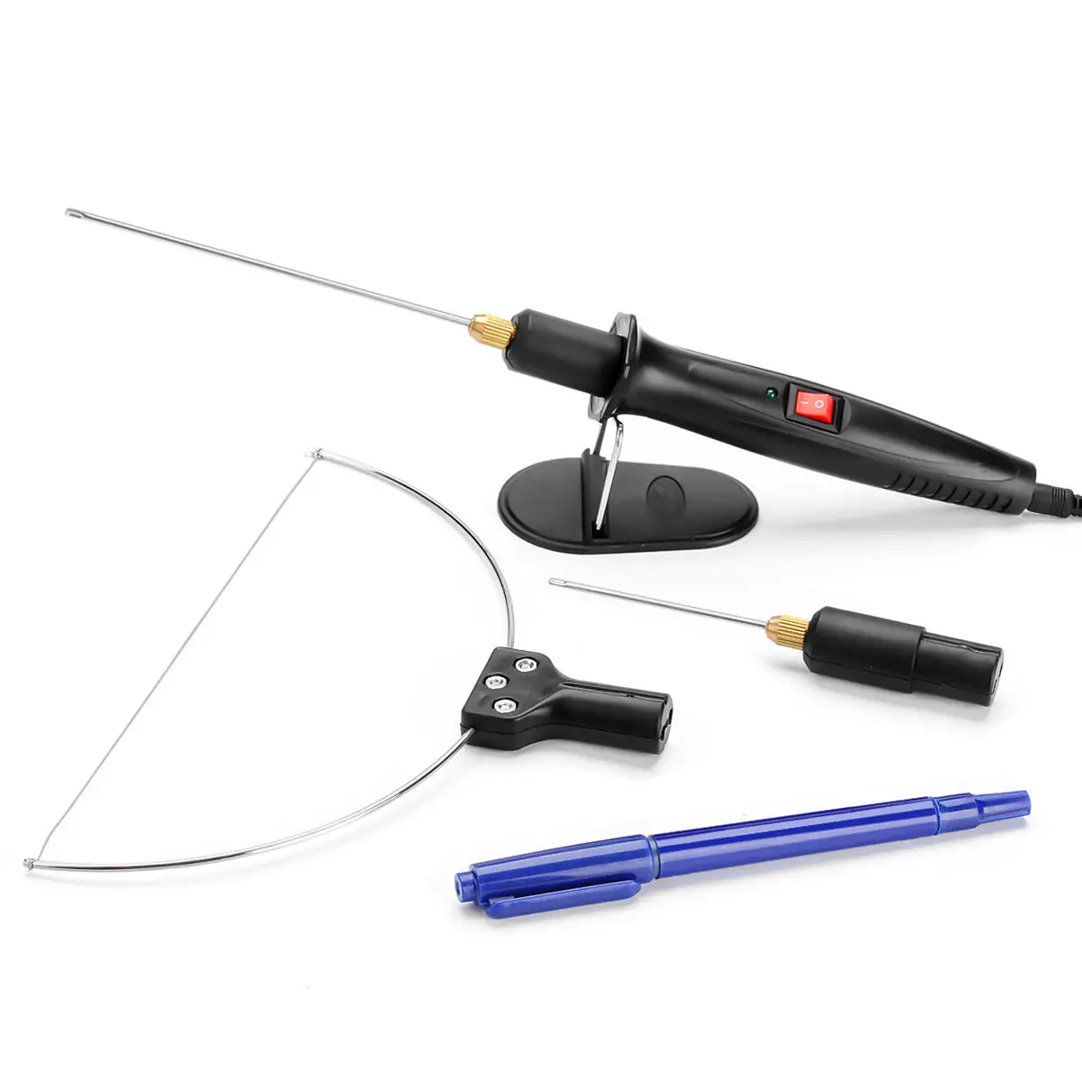 PRODUCT DETAILS ON OFF BUTTON Very convenient to press it on and off so you dont have to keep unpluging it all the time ANTI SKID DESIGN Light weight and the ergonomic designednon slip handle to help you operate it in different angles and wont get strain for large cuttingcarving projects HEATING NEEDLE Sturdy 2 0mm stainless steel needle remains rigid when cutting and carving HOT WIRED CUTTER For more detail cutting you can use the upgraded new version 0 25mm radius cutting wirr hot k nife thicker wire makes cutting easier and faster CLEAN AND SMOOTH CUTTING It heats up quickly the tube will be reached 150℃ within 10 seconds It cuts the styrofoam smooth and fast seals the edges clean and leaves no debris Specification Material Stainless SteelPen Heating Tube Diameter 2mmHeating Needle 7cm and 12cmBow Diameter 0 25mmBow Length 18cmReplacement Wire For Bow 10mProduct Weight 350Working Power 18WInput 100 240VACOutput 7 5V 2 5ADC HIGH POWER CUTTER When you turn it on before operating it can reach to 80 ℃ Highest Once it starts cutting the highest temperature is 150 ℃ APPLICATION Suitable for low density Styrofoam Pearl Cotton EPS Sponge EPP KT Board Cellullar Glass PACKAGE INCLUDED 1X 7cm Wand Style Hot K nife1X 12cm Wand Style Hot K nife1X Bow Hot Blade1X Cutter Holder1X Replacement Wire For Bow Length 10m diameter 0 25mm 1X Cutting handle1X Transformer Adapter1X Blue Pen
