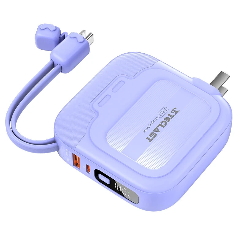 사양:브랜드TECLAST모델S10 Pro색깔하양/보라색배터리 종류리튬이온 배터리용량10000mAh등급별 용량6000mAh입력Type-C 포트: 5V/2A, 9V/2AType-C 케이블: 5V/3A, 9V/2A출력USB 포트: 5V/2.4A, 9V/2A, 12V/1.5A, 10V/2.25A타입-C 케이블: 5V/2.4A,9V/2.2A,12V/1.5A,10V/2.25AiP 케이블: 5V/2.4A, 9V/2.2A총 출력: 5V/2.4A무게240g크기84*82.9*28.9mm력20W특징: 1. 3-in-1 기능: 보조 배터리, 충전기로 작동하며 편리성을 위해 듀얼 내장형 고속 충전 케이블을 제공합니다.2. 고용량 배터리: 10000mAh 용량으로 여러 장치를 충전할 수 있어 이동 중에도 장시간 사용하기에 적합합니다.3. 다중 출력: iPhone,Huawei,Oppo 및 Xiaomi를 포함한 다양한 장치를 지원하기 위해 USB,Type-C 및 iP 출력 옵션이 장착되어 있습니다.4. 고속 충전: 빠른 전원 보충을 위한 PD(파워 딜리버리) 및 SCP(슈퍼차지 프로토콜) 고속 충전을 지원합니다.5. 컴팩트한 디자인: 가볍고 휴대가 간편하여 여행이나 일상 사용을 위해 쉽게 휴대할 수 있도록 설계되었습니다.패키지에 포함된 것:1x TECLAST S10 Pro 력 Bank