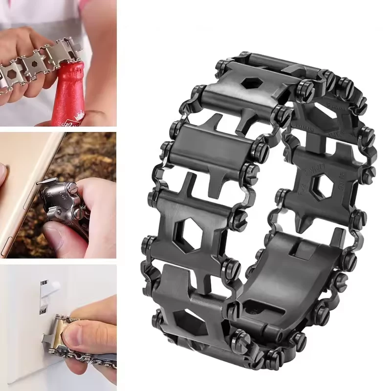 Especificações:Material: Aço inoxidávelCor: Prata, PretoTamanho: 21.74*3.05cm*6mm (Espessura) (aproximadamente)Peso: cerca de 170 gRecursos:Feito de material de alta qualidade, durável e prático de usar.Cada seção da corrente de aço é igual a uma ferramenta, incluindo uma chave de fenda, um abridor de latas, um abridor de garrafas, um abridor, uma chave.Você pode combinar aleatoriamente todas as 29 correntes de aço para diferentes funções, ou reduzir algumas seções para fazer uma pulseira.4.29 ferramentas diferentes em 10 links podem ser montadas de várias maneiras para personalizar esta ferramenta multifuncional de acordo com suas necessidades.Feito de aço inoxidável forte,é uma ferramenta ideal para acampar ou fazer caminhadas ao ar livre.6,29 ferramentas em uma pulseira, você pode desmontá-la e fazer diferentes combinações conforme sua conveniência:Alicate quadrado número 2.plugue adaptador de 1/4.Chave de fenda 1/4.Chave de fenda 1/8.Chave de fenda de 3/32.Chave de fenda 3/16.Chave de fenda hexagonal 3/32.Chave de fenda hexagonal 1/8.Chave de fenda hexagonal de 3/16.Chave de fenda hexagonal de 1/4.Chave de fenda hexagonal de 3/16.Chave de fenda hexagonal de 4 mm.Chave de fenda hexagonal de 3 mm.Chave de fenda hexagonal de 5 mm.Chave de fenda hexagonal de 6 mm.Tubo de chave de 3/16 mm.Gancho cortado, abridor de garrafas.Cilindro de oxigênio.Carburi quebrou as janelas.Ferramenta de cartão SIM / chamada.tubo chave de 3/16.Chave de fenda de 5/16 polegadas.Tubo de chave de 1/4