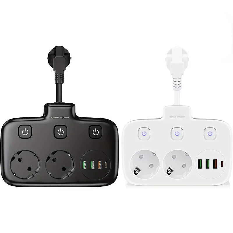 Spécifications:Matériau : PC ignifugeActuel: 10ATension: 110-250V~Puissance maximale : 2500WPorts : 2 prises secteur, 3 ports USB-A, 1 chargeur rapide USB-C5V/2.1AType de prise : EUFonctionnalités:1. Feuille de phosphore à haute conductivité en cuivre :Fabriqué avec une feuille de cuivre phosphoreux revêtue de nickel à haute conductivité,garantissant des performances électriques supérieures. La prise peut être insérée et retirée plus de 10 000 fois sans dégradation.2. Matériau PC ignifuge :Construit en plastique d'ingénierie PC haute puissance riche en gènes anaérobies. Il se décompose rapidement lorsqu'il est exposé au feu,isolant ainsi l'oxygène et empêchant les risques d'incendie. Conforme aux normes de résistance au feu UL94VO des États-Unis.3. Compatibilité avec les prises universelles :Compatible avec diverses fiches locales et internationales grâce à son douille interne en bronze phosphoreux,offrant une conductivité et une élasticité excellentes. Respecte les normes de sécurité nationales.4. Cellule d'énergie certifiée :Équipé d'une cellule d'alimentation certifiée de 0,75 mm conforme aux normes nationales,capable de fonctionner en continu à 2500W sans surchauffe ni distorsion.5. Interrupteur avec lumière indicatrice :Un voyant indique si la prise est alimentée. L'interrupteur lui-même indique également l'état d'alimentation ; appuyer sur l'extrémité blanche l'allume.6. Suspension et fixation des trous :Conçu pour un montage mural avec des trous de suspension et de fix