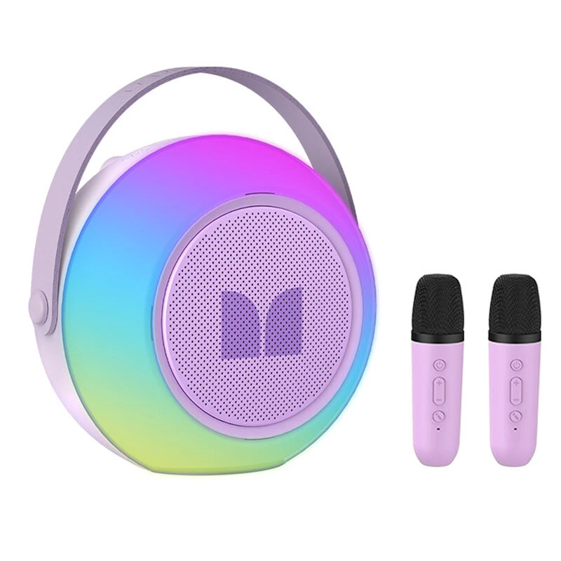الميزات:1. بلوتوث 5.4 الاتصال:مزود بأحدث تقنية بلوتوث 5.4 لنقل سريع ومستقر وتجربة صوتية لاسلكية سلسة.2. صوت عالي الجودة:يتميز بقرن 57 مم، مما يوفر صوتًا غنيًا وعميقًا وباس واضح لتجربة صوت غامرة.3. تأثيرات إضاءة RGB:إضاءة RGB ديناميكية تتزامن مع موسيقاك، مما يخلق جوًا حيويًا واحتفاليًا أينما ذهبت.4. بطارية 2400mAh:بطارية مدمجة عالية السعة توفر تشغيلًا طويل الأمد، مثالية للأنشطة الخارجية الممتدة وجلسات الكاريوكي.5. القضاء على الصوت الأصلي:وظيفة متقدمة للتخلص من الأصوات الأصلية، مما يسمح بتجربة كاريوكي احترافية بضغطة زر واحدة.أوضاع تشغيل متعددة:يدعم مجموعة متنوعة من خيارات التشغيل بما في ذلك البلوتوث وAUX وU Disk، مما يضمن التنوع والراحة في سيناريوهات مختلفة.المواصفات:المواصفات العامةعلامة تجاريةوحش النموذجM8 لونأرجواني/بيجالمتحدث57مماستجابة التردد120-18KHzبلوتوثنسخة البلوتوثV5.4الملفات الشخصية المدعومةHFP/HSP/A2DP/AVRCPمسافة الإرسال10مالبطارية والشحنسعة البطارية2400mAhوقت الموسيقى3.5 ساعةوقت الشحن3.5 ساعةالحجم والوزنوزن المنتج0.4710gوزن الحزمة0.6000gحجم المنتج140×124×96mmحجم العبوة180×168×110مmقائمة الحزم1× المتحدث2× مايكرفون1× سلك الشحن1× دليل المستخدم