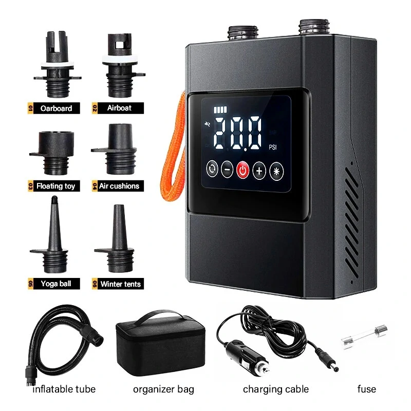 Özellikler:Ürün Adı: Elektrikli Pompa Boyut: 198x149x76mm Hava Basıncı: MAKS 20 PSI Hava akımı: 36 Silindir Motor: 60L / Dakika Mod: 3 ModEkran: LED EkranıPil Kapasitesi: 12000 mAh Şarj portu: USB / Type-C / 5.5*2.5 DC Type-C: 5V 2A / 5.5*2.5 DC: 12V 2A5V 2A Sıcaklık: -10°~60° Kullanım: Şişir / Sönme Filtrasyon: Filtre Yünü (DEFLATE) Tüm aksesuarlar: Pompa / Hava kanalı / DC Soket / 6 Nozul / Düzenleyici çantaAğırlıkL 1,47kg Özellikler: 1. LED Işık: Elektrikli Pompa, düşük ışık koşullarında veya gece aktiviteleri sırasında kullanım kolaylığı sağlayan bir LED ışık özelliğine sahiptir. Bu özellik, şişirme veya indirme işlemleri sırasında güvenlik ve görünürlüğü artırır.2. 12000mAh Güç Bankası Olarak Kullanın: Bu elektrikli pompa 12000mAh kapasiteli bir güç bankası olarak da kullanılabilir. Bu özellik, kullanıcıların hareket halindeyken akıllı telefonları veya tabletleri gibi elektronik cihazlarını şarj etmelerini sağlayarak, çok yönlü ve çok işlevli bir araç haline getirir.3. 60L/Dakika Yüksek Basınçlı Akış: Elektrikli Pompa,dakikada 60 litrelik yüksek basınçlı bir akış hızı sunar. Bu güçlü hava akışı stand-up sörf tahtaları veya havalı yataklar gibi şişirilebilir eşyaların hızlı ve verimli bir şekilde şişirilmesini veya boşaltılmasını sağlar. Yüksek basınçlı akış,zaman ve çaba tasarrufu sağlayarak,açık hava maceraları ve etkinlikleri için idealdir.4. Kablosuz Tasarım: Bu elektrikli pompa kablosuz olarak tasarlanmış olup, şişirme veya boşalma işlemleri sırasında kolaylık ve esn