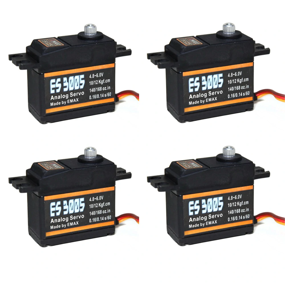 Açıklama:Marka Adı: EMAX- Öğe NO.: ES3005- Gerilim: 4.8 ~ 6.0V- Ters saat yönü: Saatin tersine doğru / Darbe Seyahati 1500 ila 1900 usec kullanın- Tork/Hız(4.8V): Yük olmadan 10.0Kgf.cm/0.16Sec/60°- Tork/Hız(6.0V): Boşta 12.0Kgf.cm/0.14Sec/60°Boyut: 38.6*18.8*34.9mm- Ağırlık: 42g- Terminal: FUT;JRDiğerleri: Rulman, Analog, Metal Dişli, Su GeçirmezPaket içeriği:4x EMAX ES3005 servo