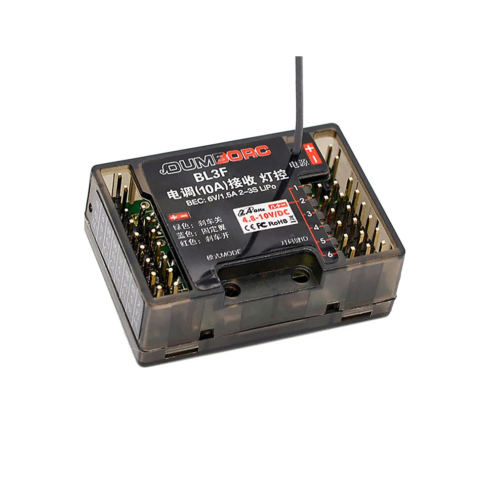 DumboRC BL3F(G) 2.4GHz 6CH 3-in-1 조명 제어 RC 수신기 X4 X5 X6 X6PM 라디오 송신기 지원 자이로설명:브랜드: DumboRC모델: BL3F(G)버전: 자이로스코프 포함 / 자이로스코프 미포함 (선택 사항)변조 모드: GFSK스프레드 스펙트럼: FHSS제어 거리: 400미터 이상수신기 전압 범위: 4.8-10V전압 범위: 2-3S호환 가능: X4 X5 X6 X6A X6P 송신기제품 크기: 40*28*19mm, 안테나 길이 160mm특징:* 라이트 제어 지원10A ESCDumboRC BL3F(G) 리뷰: 여기를 클릭하세요포함된 패키지:1x DumboRC BL3F(G) 2.4GHz 6CH RC 수신기