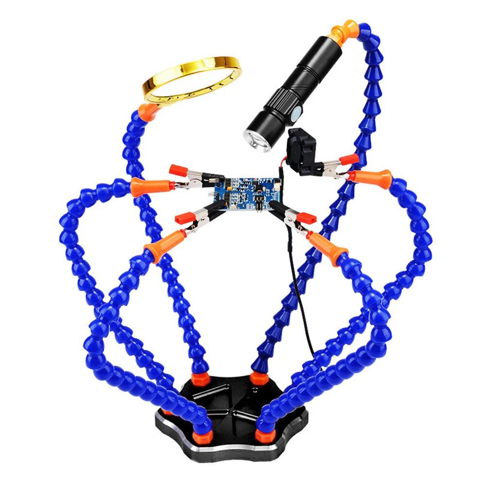 الوصف:مساعد متعدد اللحام بثلاثة أيدي يحتوي على ستة أذرع مرنة لتصليح نمذجة المكونات الملحومةميزة:يسمح لك تحامل منتجاتنا بإنهاء عملك بشكل أسرع من أي وقت مضى من خلال تحقيق اللحام السريع والالكترونيات ومشاريع DIY! تجعل منتجاتنا تحديد المواقع أسهل من خلال ستة أذرع مرنة.2. أذرع مرنة تحتوي على مشبك تمساح قابل للتدوير، يمكن إزالة المشبك، أكثر استقرارًا، ومنع أعقاب الاحترار من السقوط.3. قاعدة مقطوعة بدقة ومذهبة بالذهب بشكل جميل4. أطراف مشابك سليكون لمقاومة الحرارة النهائية5. أقدام قابلة للإزالة لعملية مستقلة مستقرةيتكامل بشكل مثالي مع بانافيس فايسز وتركيبات القواعدتخصيص:المادة الأساسية: سبيكة الألومنيومطول أنبوب المفصل العالمي: 340 ملم (شماعة التمساح مشمولة)لون قاعدة سبيكة الألومنيوم: أسود / بنفسجي (اختياري)توضيح:1. صواني مدمجة أكثر ملاءمة2. يمكن للمفتاح الصغير إزالة الأذرع3. حصيرة المطاط، حماية الهيكل الأساسي.6 قطع قابلة للإزالة للمشابك، أكثر استقرارًا وأكثر راحة.شملت الحزمة:1 قاعدة سبائك الألومنيوم1 x منظار تكبيرمصباح يعمل بالشحن عبر USB بتكبير 1X-4X1 × مروحة DC لا تعمل بفرش USB6 × مشابك تمساح6 × مفصل خرطوم مشتركصور التفاصيل: