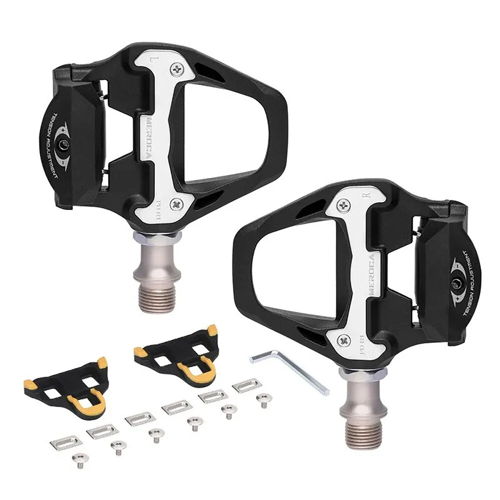 Especificações:PesoAproximadamente 272g/parMaterialCorpo em fibra de nylon + Eixo de aço de molibdênio cromoSistema de PedalSPDCorPretoParaBicicleta de estrada Recursos:Pedal de travamento automático: O pedal de travamento automático para bicicleta MEROCA garante que sua bicicleta fique segura e estável durante a pedalada.• Pedal Ultraleve: Este pedal é ultraleve, tornando-o perfeito para aqueles que desejam reduzir o peso de sua bicicleta sem sacrificar o desempenho.• Peça de travamento com rolamentos selados: A peça de travamento com rolamentos selados garante que seus pedais permaneçam seguros no lugar, mesmo durante passeios intensos.Compatível com o sistema SPD: O pedal de bloqueio de bicicleta MEROCA é compatível com o sistema SPD, facilitando a instalação e o uso na sua bicicleta de estrada.O pacote inclui:1Par de Pedais 1 x acessórios de montagem1 x Chave inglesa