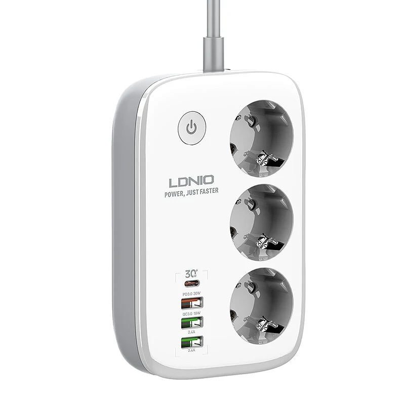 المواصفات: العلامة التجارية: LDNIOنوع القابس: قابس EUالمعلمات المقترحة: 2500 واط ، 10 أ ، 250 فولت ~100-250V، 50/60Hz، 10A (MAX)PD الإخراج: 5V/3A، 9V/3A، 12V/2.5A، 15V/2A/5A، 30W (MAX)الناتج PPS: 3.3-5.9V/3A، 3.3V-11V/3Aمخرج QC: 5V / 3A، 9V / 2A، 12V / 1.5A، 18W (MAX)إخراج AUTO-ID: 5V/2.4Aالطاقة الكلية: 30W MAXتردد واي فاي: 2.4 جيجاهرتزخيارات اللون: أبيض الميزات:اتصال WiFi الذكي: يتميز شريط التوصيل بقدرة على الاتصال بشبكة WiFi مدمجة، مما يتيح للمستخدمين التحكم عن بعد وإدارة الأجهزة المتصلة عبر هواتفهم الذكية أو أجهزة الكمبيوتر اللوحية. يتيح هذا التبديل المريح للتشغيل/الإيقاف، والجدولة، ومراقبة الطاقة، وتعزيز التحكم المنزلي وكفاءة الطاقة.2. منافذ شحن متعددة الاستخدامات: مزودة بـ 3 مقابس إيو و 4 منافذ USB ، توفر قاطع التيار خيارات شحن وفيرة لأجهزة مختلفة مثل الهواتف والأجهزة اللوحية والكمبيوترات وغيرها من الأجهزة الإلكترونية. توفر منافذ PD و PPS و QC و AUTO-ID شحنًا محسنًا للأجهزة المتوافقة ، مما يضمن شحنًا أسرع وأكثر كفاءة.4. التعامل مع طاقة عالية: بطاقة تصنيفية تبلغ 2500 واط و10 أمبير، يمكن لهذه لوحة التوزيع التعامل مع أجهزة متعددة بشكل متزامن دون حدوث حمل زائد. إنه يوفر حلاً آمنًا وموثوقًا لتوزيع الطاقة للاستخدام المنزلي أو المكتبي.5. الآليات الذكية لحماية الجهاز : يتضمن شريط الطاقة عدة ميزات أمان ، مثل حماية الجهد الزائد ، وحماية الجهد الزائد ، وحماية الدائرة القصيرة ، وحماية الارتفاع الفائق ، حيث يحمي الأجهزة المرتبطة من الضرر المحتمل الناجم عن الأخطاء الكهربائية. 6. تصميم أنيق وبسيط: المتاحة بخياري لون أنيق، أبيض ورمادي، تمتزج هذه المقبس بسلاسة مع أنماط التصميم الداخلي ال