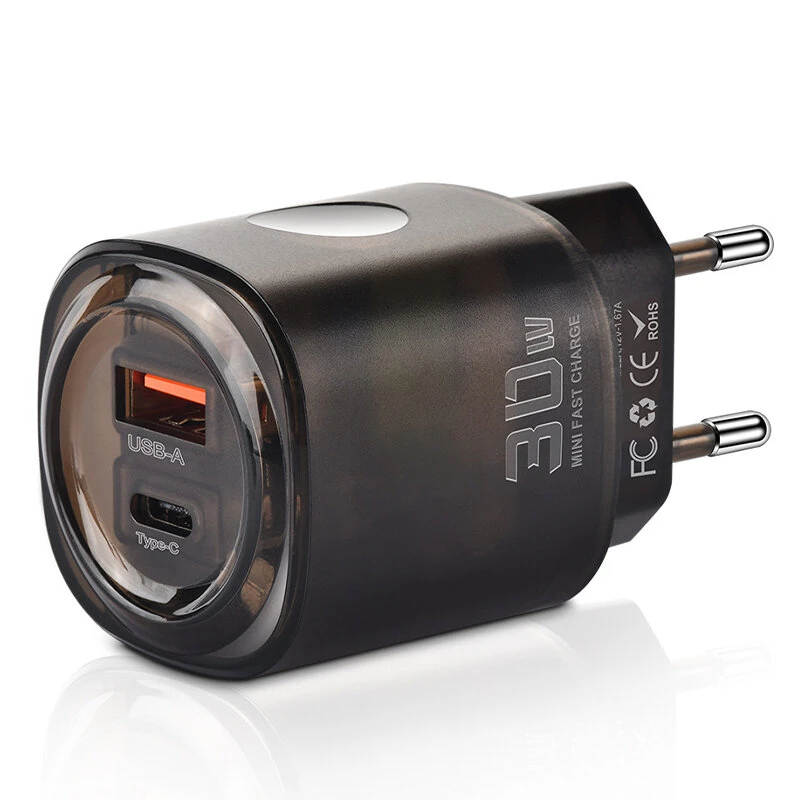 사양:색깔검은색재료BAS크기78*38*38mm(EU) / 55*38*38mm(US)무게39g(유럽) / 35g(미국)인터페이스USB-A+유형-C입력5V-3A 9V-2.22A,12V-1.6A출력5V-3A 9V-2.22A,12V-1.67A프로토콜PD QC3.0유형EU 플러그 / 미국 플러그력30W특징: 1. 여행 및 일상 사용에 적합한 크기의 컴팩트하고 휴대 가능한 디자인.내구성이 뛰어나고 고품질의 BAS 재료로 제작되어 내구성과 신뢰성을 보장합니다.3. 듀얼 USB-A + 유형-C 인터페이스,다양한 장치 및 충전 케이블과 호환됩니다.4. PD QC3.0 프로토콜을 통한 고속 충전 기능으로 장치를 효율적이고 빠르게 충전할 수 있습니다.5. EU 및 US 플러그 옵션으로 모두 제공되어 다양한 지역에서 쉽고 편리하게 사용할 수 있습니다.패키지에 포함된 것:1x 충전기