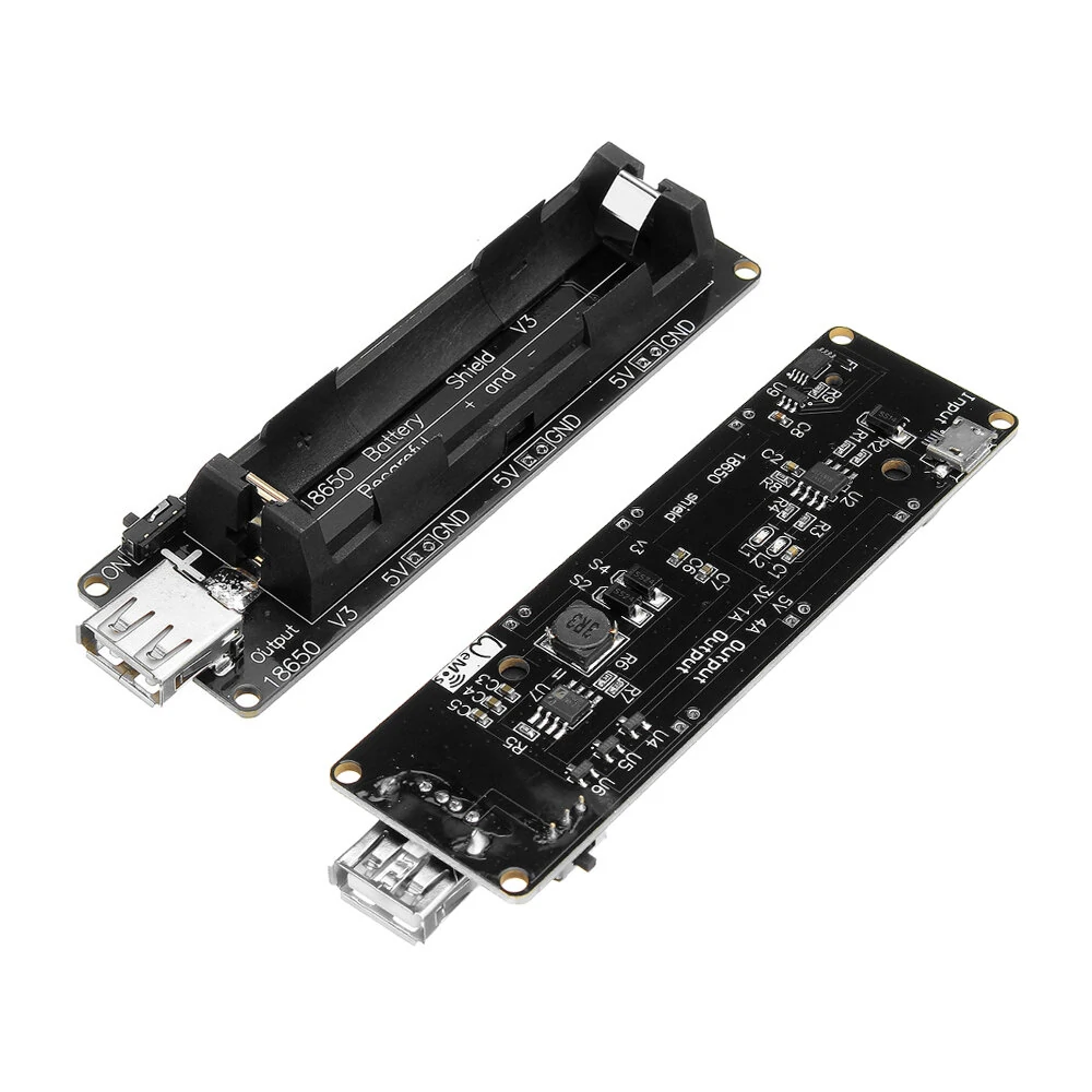 Note:Ce module est adapté uniquement pour une batterie 18650Ce module peut être alimenté à la fois pour Raspberry Pi et pour un capteur en même tempsCe module produit un courant jusqu'à 2A(Ce produit ne contient pas d'installation de batterie 18650, faites attention à la polarité positive et négative lors de l'installation, ne pas inverser. Veuillez suivre la direction + - sur le PCB et ne pas suivre les directions positive et négative sur le support de batterie)Fonctionnalités:1. Avec une protection contre la surcharge et une protection contre la décharge excessive2. Interface de chargement micro USB3. Courant de charge: 0.5A4. 1 commutateurs pour contrôler la sortie USB5. Tension d'entrée: 5 ~ 8V6. Trois interfaces de sortie 3V 1A7. Trois interfaces de sortie 5V 2A8. Voyant LED, vert pour charge complète, rouge pour charge en coursLe package comprend:1 x Carte de Protection de Charge de Batterie 18650