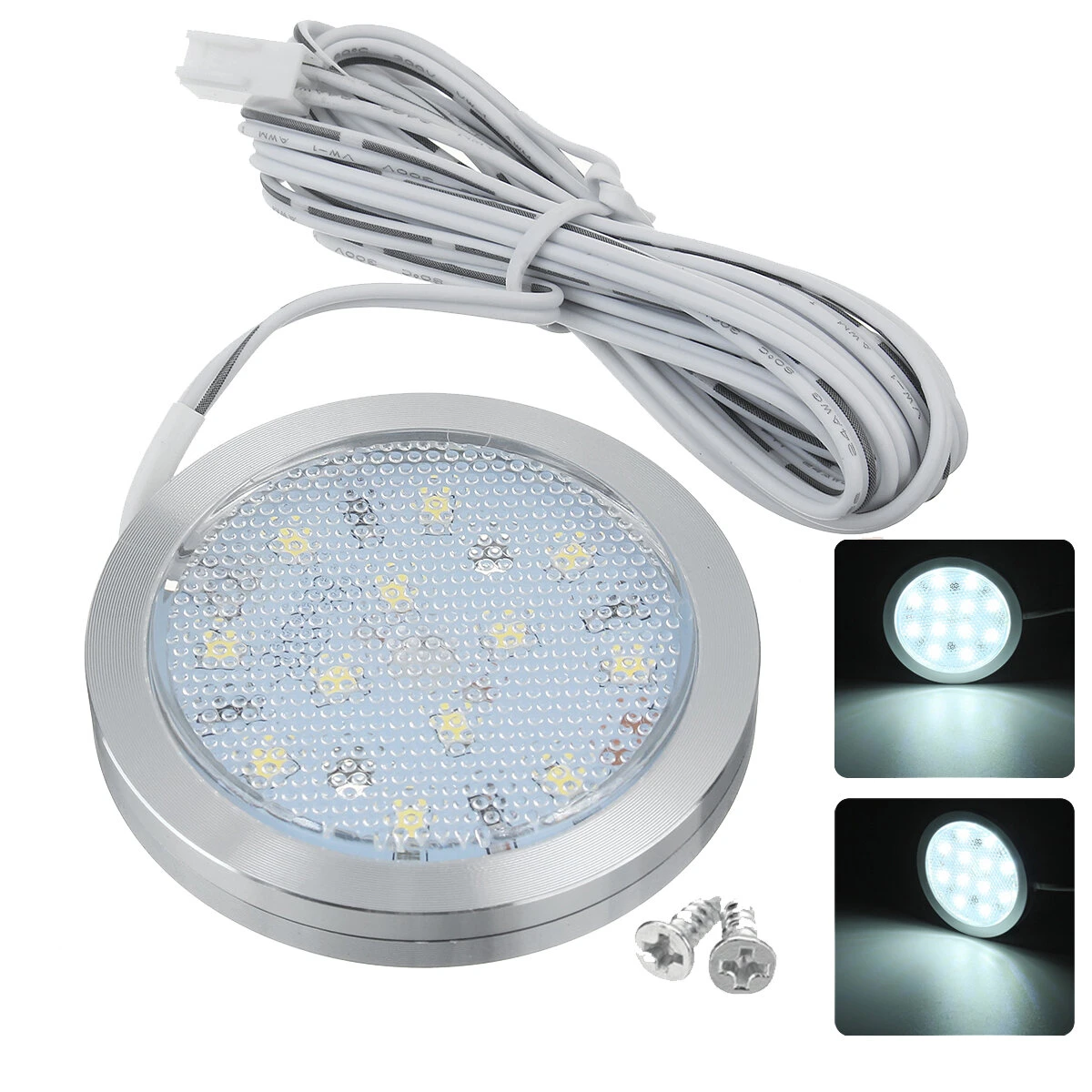 Caratteristica:Lente trasparente, scocca in alluminio, più leggero e resistente, basso consumo energetico, buona dissipazione del calore.2. I faretti a LED sono molto adatti per camper, furgoni, caravan, autobus, barche,Per VW T4 T5 e una varietà di veicoli di trasporto. Adatto anche per armadietti per la casa, armadietti da cucina, armadietti, librerie.3.Easy to install, but some holes may need to be drilled (the thickness of this lamp is 10mm). Specifiche:Nome del prodotto Faretto a LEDMaterial Leghe di alluminio + PlasticaColore del guscio ArgentoDimensione 60mm/2,36"x10mm/0,39" (LxA)Lunghezza del cavo Circa 2M/78,74"Colore chiaro Bianco caldo / BiancoTensione 12VPotenza 2.5WQuantità di LED 12 pezziTemperatura colore Luce bianca: 6500K / Bianco caldo: 3000KTemperatura di esercizio -20°C~+50°CQuantità 1 pezzo Montaggio:Per veicoli del sistema 12V come VW T4 T5 / Camper / Lorry / Caravan / Bus / Boat / Motorhome e altri Nota:Forniamo immagini chiare, misurazioni quando possibile. Controlla il più possibile per assicurarti che l'articolo sia quello di cui hai bisogno.2. Si prega di consentire una differenza di 0,5-1 pollice a causa della misurazione manuale. (1 pollice = 2,54 cm)3.There are no instructions included in this kit.If you want to know how to use or install it,please contact us by Email.We will provide help as much as possible. Pacchetto incluso:1 X Luci spot a LED 12V2 X Viti