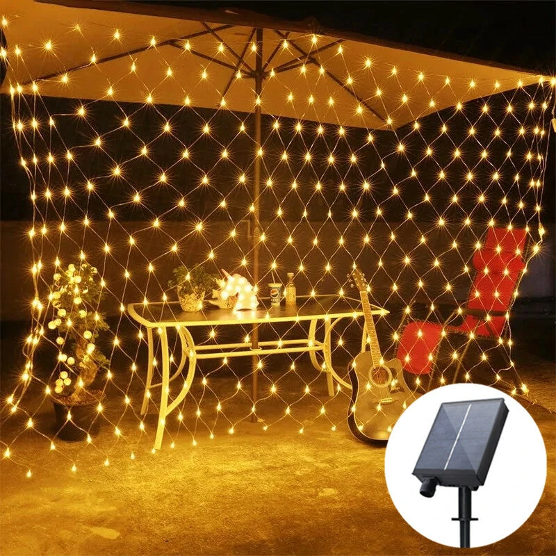 Спецификация:Размер: 1,5 * 1,5 м, 3 * 2 м Цвет: Белый, Теплый белый, Многоцветный, СинийЦвет кабеля: ПрозрачныйТип: Солнечная энергия8 Различных Режимов:Комбинация, Волны, Последовательно, Медленное освещение, Бег/Вспышка, Плавное затухание, Мигание/Вспышка и Постоянный светПримечание: Светодиодная лента водонепроницаемая, но контроллер не водонепроницаемый.Приложения:Свадебный фон, отели и рестораныКоммерческие, Домашние, Витрины, Клубы, Концерты, Караоке, Шоу мод, Танцевальный зал, Сцена и т.д.Его можно положить или повесить на стены, окна, двери, полы, потолки, травы, ёлки и т.д.Идеальное украшение на День Святого Валентина, Рождество, другие праздники, вечеринку, свадьбу и т.д.Особенности:1. Декоративный: Украсить окружающую атмосферу красивым звездным освещением.2. Солнечная энергия: Нет необходимости в батареях или электричестве, устойчивая и экологически чистая.Удаленное управление: удобное регулирование режима и яркости освещения.Водонепроницаемый: Разработан для выдержки погодных условий на открытом воздухе, обеспечивая долговечность.5. Легкая установка: просто повесьте сеточные огни и наслаждайтесь волшебной атмосферой.Пакет включает в себя:1 x Солнечные светодиодные сеточные огни