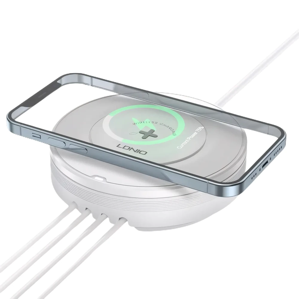 사양:브랜드: LDNIO{"모델": "AW003"}제품명: 데스크탑 무선 충전 스테이션AC 100-240V 50/60Hz 0.8A MaxUSB-C 출력: 5V=3A, 9V=2.22A, 12V=1.67A (최대 20W)USB-A (자동 ID) 출력: 5V=2.4A (최대 12W)USB-A (QC3.0) 출력: 5V=3A, 9V=2A, 12V=1.5A (최대 18W)무선 출력: 15W (5W/7.5W/10W/15W) 최대전체 전력: 32W MAX케이블 길이: 1.5m특징:1. 15W 무선 충전기:최적의 효율성을 위해 15/10/7.5/5W 충전 모드 간에 자동으로 조정합니다.장치를 분리할 필요 없이 충전 상태를 모니터링할 수 있습니다.2. 4포트 고속 충전소:1x 20W PD3.0 Type-C 포트, 1x 18W QC3.0 USB 포트, 2x 12W USB 포트가 포함되어 있습니다.각 장치의 충전 요구 사항을 식별하고 충족하기 위해 스마트 충전 기술이 탑재되었습니다.3. 깔끔한 데스크탑 솔루션:단일 5피트 전원 코드로 동시에 5개 장치를 충전하세요.케이블 혼잡을 줄이고 집이나 사무실의 충전 공간을 정리합니다.4. 사용자 친화적인 디자인:전원 연결을 표시하는 LED 표시등이 있으며, 어두운 곳에서 장치를 찾는 데 도움이 됩니다.미끄럼 방지 스트립은 전화기를 안전하게 고정하고 허브가 진동에도 제자리에 유지되도록 보장합니다.5. 넓은 호환성:아이폰 16/16 프로/15/14/13 프로 맥스, 아이패드 프로, 맥북 프로 및 에어팟을 포함한 다양한 장치에 적합합니다.6. 효율적인 전력 관리:최대 32W의 총 전력을 제공하여 여러 장치의 충전 속도와 효율성을 향상합니다.포함된 패키지:1 x LDNIO AW003 데스크탑 무선 충전 스테이션