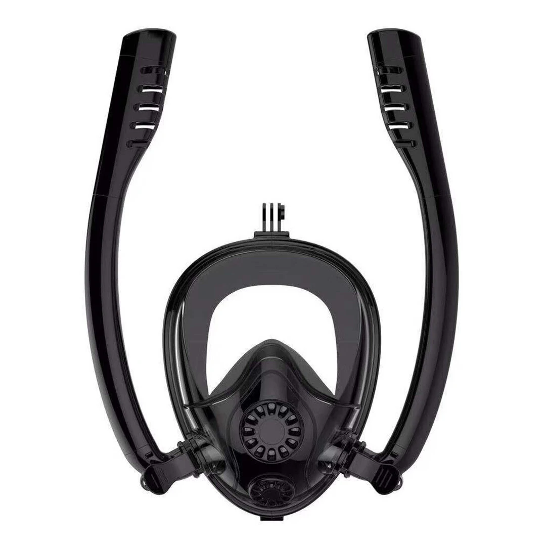 Especificações:Nome do produtoÓculos de mergulho de tubo duploMaterialPC+SiliconeTamanhoS/M: 3,94 polegadas (10 cm) a 4,7 polegadas (11,93 cm)L/XL: >4.7IN (11,93cm) Recursos:Mais oxigênioDois tubos de respiração mais longos aumentam o fluxo de ar em 100%2. Bom efeito impermeávelWSistema de flutuabilidade à prova d'água com contas faz você respirar mais facilmente debaixo d'água.3. Bom efeito antifog: os canais antifog e os canais de fluxo de ar proporcionam uma visão mais clara debaixo d'água.4. Fácil de usarA correia elástica ajustável permite que você encontre a forma adequada de usar.5. Design do suporte da câmera: compatível com uma câmera removível de movimento, ajudando você a gravar o fantástico mundo subaquático.O pacote inclui:1× Óculos de mergulho de tubo duplo1× Bolsa de malha portátil1x Protetor auricular à prova d'água1× Parafusos de câmera1× Manual do produto