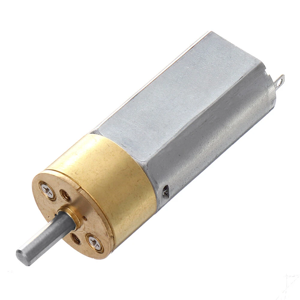 Descriptions:Machifit DC 12V 30-800rpm Motoréducteur à engrenages de réduction 16GA050 pour serrures intelligentes, compteurs et caméras de sécuritéSpécifications:Nom du produitMoteur à engrenages de réductionNuméro de modèle16GA050MatérielAcier inoxydable 304CouleurArgentTension nominaleDC 12VTaille16 mm × 16 mm × 40 mmLongueur totale47mmLongueur du corps40mmLongueur de l'arbre10mmDiamètre de l'arbre3mmQuantité1 Pc x Moteur réducteur à engrenagesVoltageRapport de vitessePas de vitesse terrestreAucune terre couranteCouple de charge VitesseChargement du Courant de CoupleCouple de Charge CoupleCourant de ralentiCouple de démarrage12V1:33030RPM≤50MA27RPM≤70MA560g.cm≤1.1A7.4KG.CM12V1:15060RPM≤70MA56RPM≤100MA480g.cm≤1.1A6,4KG.CM12V1:100100RPM≤50MA83RPM≤85MA340g.cm≤1.1A5,0KG.CM12V1:80150RPM≤50MA132RPM≤85MA320g.cm≤1.1A5,2 KG.CM12V1:62.5200RPM≤80MA165RPM≤105MA280g.cm≤1.1A4,65KG.CM12V1:40300RPM≤50MA234RPM≤85MA210 g.cm≤1.1A4.4KG.CM12V1:30400RPM≤70MA322RPM≤145MA180g.cm≤1.1A3.85KG.CM12V1:24500RPM≤90MA416RPM≤145MA165g.cm≤1.1A3.6KG.CM12V1:20600RPM≤90MA505RPM≤145MA160 g.cm≤1.1A3.6KG.CM12V1:16800RPM≤90MA688RPM≤145MA145g.cm≤1.1A3,4 kg ?· cmFonctionnalités:Il peut être utilisé dans les serrures de porte, les compteurs, les caméras de sécurité, les micro robots, les équipements médicaux, etc.- Il possède les caractéristiques de haute efficacité, faible bruit, bonne sensibilité et longue durée de vie.- Équipé d'un réducteur de précision, il peut être considéré comme l'actionneur préféré dans div