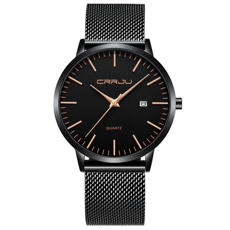 사양:브랜드: CRRJU스트랩 재질: 스테인레스 스틸시계 케이스 재질: 아연 합금다이얼 모양: 원형스타일: 캐주얼무브먼트: 쿼츠 시계구동 방식: 전자식다이얼 직경: 40mm케이스 두께: 7mm (0.27인치)Watch Length: 24cm밴드 너비: 20mm무게: 70g방수: 3Bar특징:1.달력이 있는 큰 클래식 다이얼;2.얇고 간단한 디자인: 두께 7mm의 얇은 다이얼과 둥근 검은색 선이 있는 시계 케이스,미니멀리스트 스타일의 외관,독특하고 눈에 띄는.3. 방수: 방수 (3ATM),손세탁,문제 없음! 모든 종류의 비즈니스,캐주얼,실내 활동 또는 일상 사용에 완벽합니다.참고:스트랩과 페이스를 정기적으로 청소하기 위해 마이크로파이버 천을 사용하는 것이 강력히 권장됩니다;물속에서 어떤 버튼도 누르지 마시고 극한의 차가운 물이나 뜨거운 물에서 사용하지 마십시오.패키지에 포함되어 있는 것: 1 x 시계1 x 시계 상자