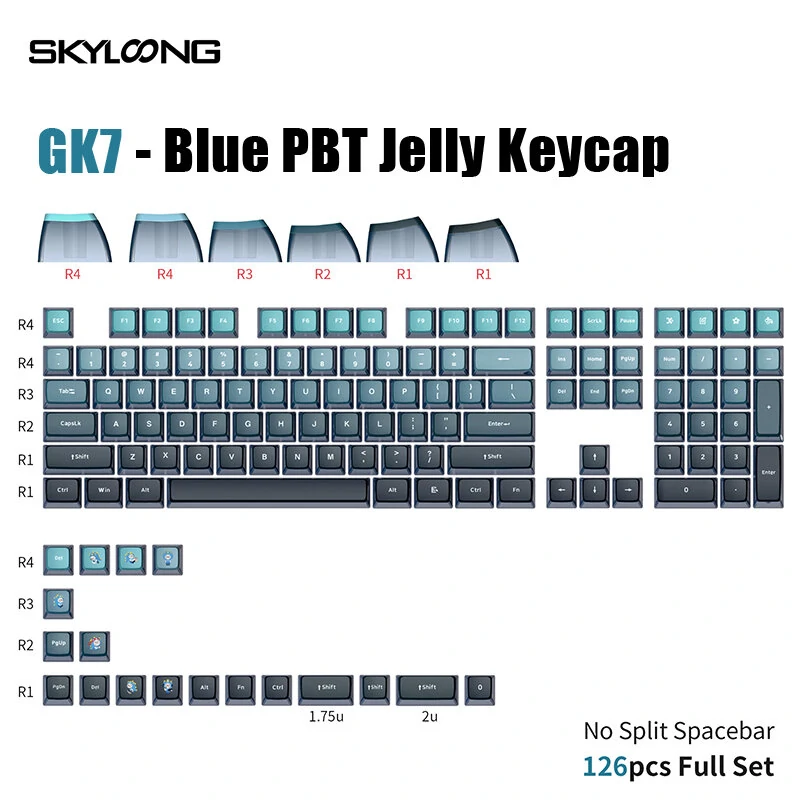 SKYLOONG URL da série:https://www.banggood.com/marketing-SKYLOONG-Teclado-mecânico-e-Chavecaps-Novo-lançamento/tid-61063.html?utmid=23589Especificações:MarcaSKYLOONGModeloGK7Chave126CorAzulMaterialPBTFormaGelatinaRecursos: 1. Cor azul chamativa: o conjunto de teclas SKYLOONG GK7 vem em uma deslumbrante cor azul que faz seu teclado se destacar. As teclas são projetadas para adicionar um toque de cor para a sua configuração e criar uma atmosfera vibrante. A cor azul é perfeita para gamers e digitadores que desejam adicionar um toque de personalidade ao teclado.2. Formato de geleia: O formato das teclas em formato de geleia é único e atraente. O design translúcido permite que a iluminação RGB do seu teclado brilhe, criando um efeito fascinante. O formato das teclas também é confortável de usar, tornando a digitação e os jogos uma brisa.3. Material PBT de alta qualidade: As teclas são feitas de material PBT de alta qualidade, conhecido por sua durabilidade e resistência ao desgaste. O material também é resistente ao desbotamento, portanto as teclas terão aparência nova por um longo período de tempo. O material PBT também proporciona uma sensação confortável ao digitar ou jogar.4. Conjunto de 126 teclas: O conjunto de teclas SKYLOONG GK7 vem com 126 teclas, o suficiente para cobrir a maioria dos teclados padrão. O conjunto inclui todas as teclas necessárias para um teclado de tamanho completo, incluindo teclas de função, teclas de seta e teclas numéricas. O conjunto também é compa
