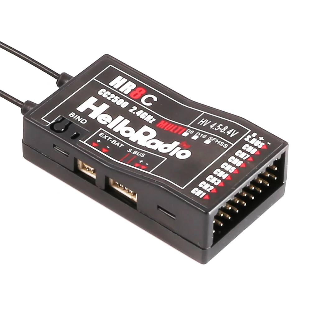 HelloRadioSky HR8C 2.4GHz 9CH CC2500 D8/D16/SFHSS PWM Mini Receptor para Avião RC FPV Corredor Drone Carro RC BarcoDescrição:Marca: HelloradioSkyItem: receptor PWM HR8C 2.4GHzNúmero de canais: 9 canaisFaixa de frequência: 2400-2483.5MhzFaixa de alimentação: 4.5-8.4VFormato de sinal: D8/D16v1/SFHSSFormato de saída: PWMSuporte a feedback: Suporta feedback RSSI. D8 suporta feedback de tensãoDistância de controle: >1 kmComprimento da antena: 20 cmDimensões: 48*27*15mmPeso: 13.7gVincular:1. Desligue o transmissor. 2. Repita o acionamento do receptor três vezes,a luz do receptor pisca duas vezes,indicando que o receptor está em modo de emparelhamento. 3. Ligue o transmissor,acesse a interface de operação LUA do EXPRESSLRS,selecione [VINCULAR] e confirme. 4. A luz do receptor está sempre acesa,indicando que a conexão foi bem-sucedida.Pacote incluído:1x HelloradioSky HR8C receptor PWM de 2.4GHz