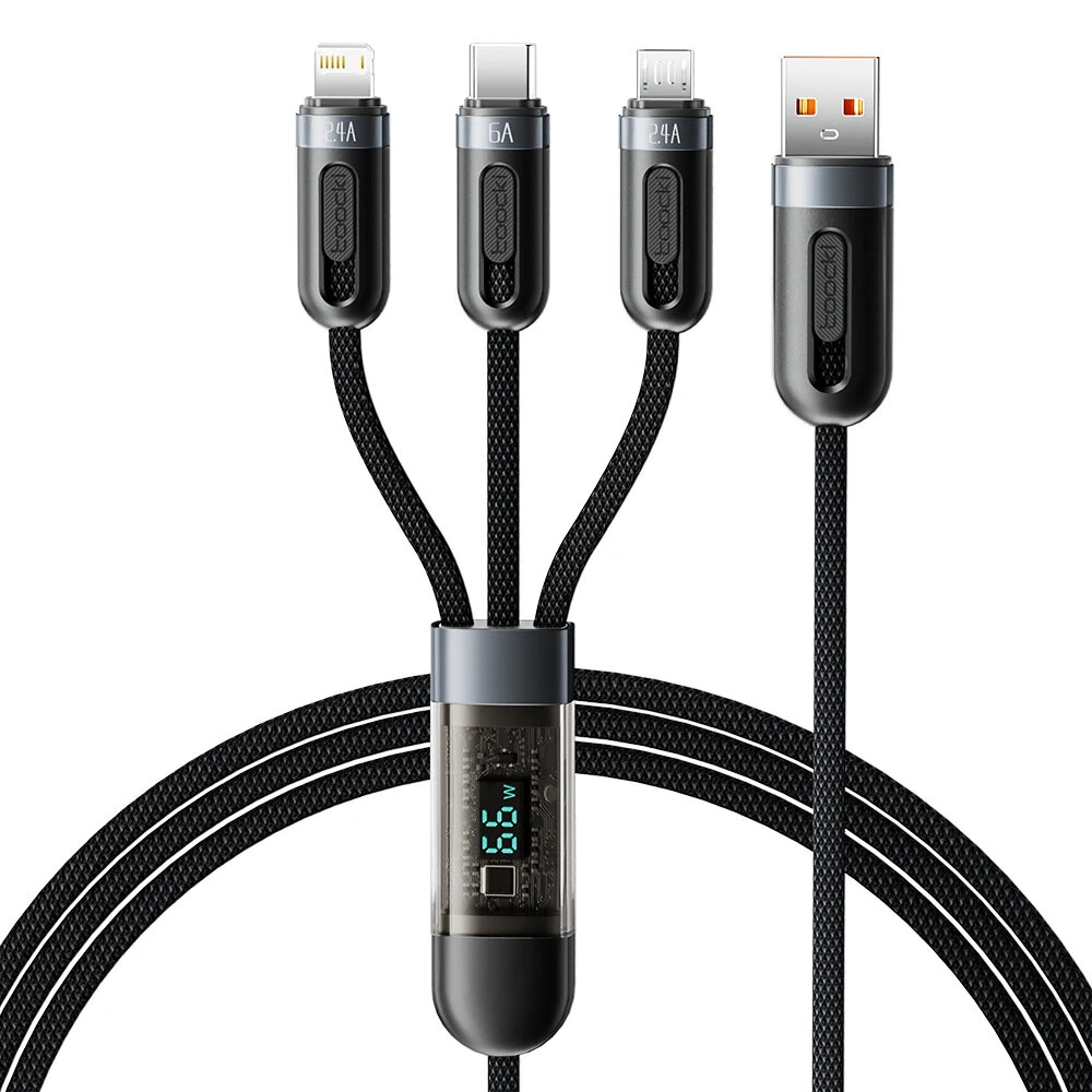 Özellikler:MarkaToockiModelTQ-X62MalzemeAlüminyum Alaşımı+Örgülü TelRenkMavi/GriKablo Uzunluğu1.2MGüç/Akım66W/6AGiriş ArayüzüUSB-AÇıkış ArabirimiType-C/Micro/iPVeri İletimiDestekUyumlu CihazlarAkıllı telefonlar, Tabletler, Dizüstü bilgisayarlarÖzellikler: 1. Çok Yönlü Uyum: Toocki TQ-X62,akıllı telefonlar,tabletler ve dizüstü bilgisayarlarla uyumludur ve bunu tüm elektronik cihazlarınız için vazgeçilmez bir aksesuar haline getirir.2. Yüksek Güç Çıkışı: 66W güç çıkışı ve 6A akım ile bu şarj kablosu,cihazlarınız için hızlı ve verimli bir şarj sağlar.3. Dayanıklı ve Güvenilir: Yüksek kaliteli alüminyum alaşımı ve örgülü tel ile yapılan TQ-X62,günlük kullanıma dayanacak şekilde tasarlanmış ve uzun ömürlü performans sağlar.4. Kolay Veri İletimi: Kablo,dosyaları aktararak ve cihazlarınızı zahmetsizce senkronize ederek veri iletimini desteklemektedir.5. Birden Fazla Çıkış Arayüzü: Giriş arayüzü olarak USB-A,çıkış arayüzleri olarak Type-C,Micro ve iP ile donatılmış olan kablo,çeşitli cihazlar için esnek şarj seçenekleri sunar.Paket içeriği:1x Toocki TQ-X62 Hızlı Şarj Veri İletişim Kablosu