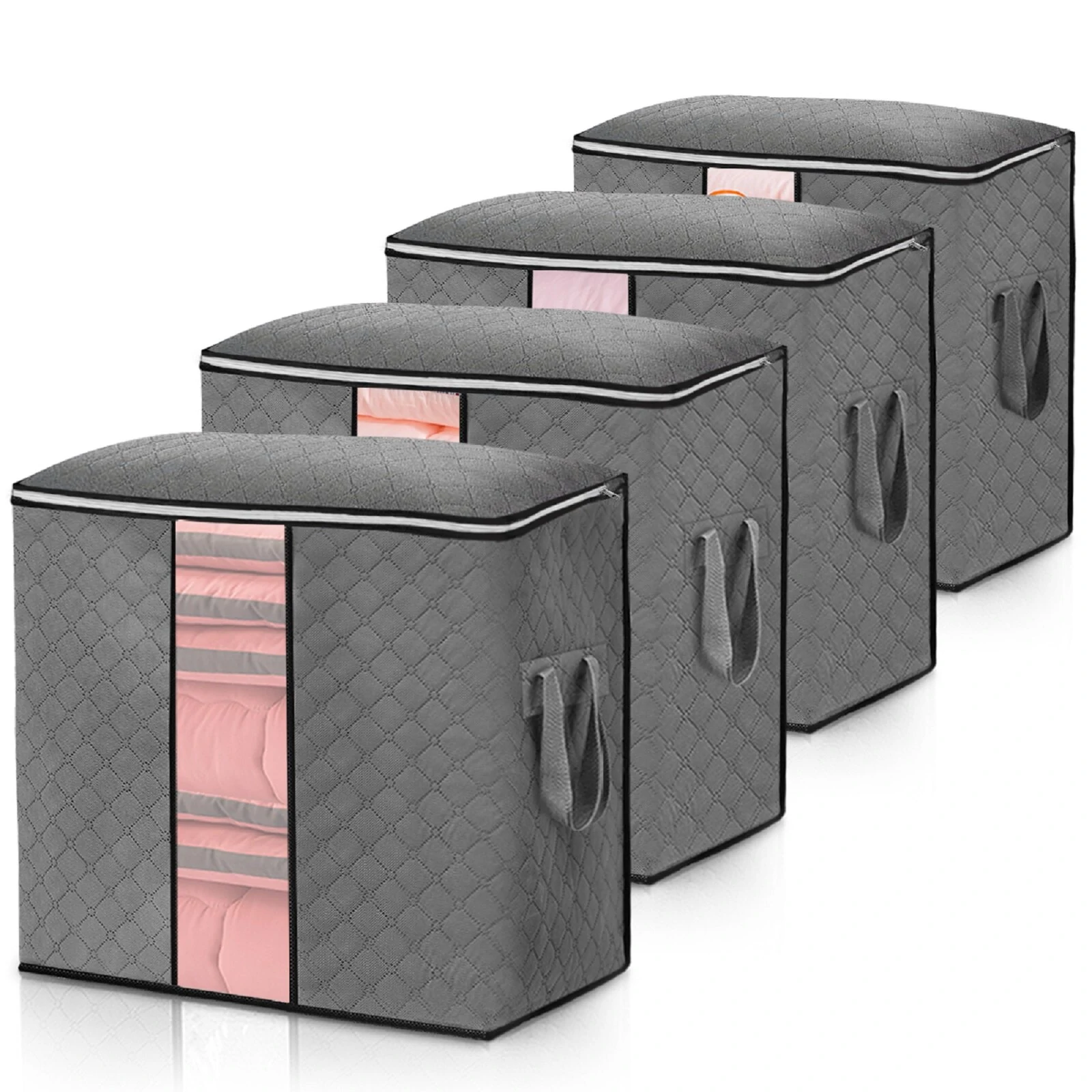 Description:Sac de rangement pour vêtements en tissu non-tissé pliable à haute capacité, sac de rangement portable pour couettes, conteneur de stockage portableCaractéristiques:- Matériau de mise à niveauNotre organiseur de vêtements est fabriqué à partir d'un tissu non tissé composite à trois couches de haute qualité, sans odeur, qui favorise la ventilation et protège vos affaires de l'humidité et de la poussière. Les sacs de rangement sous le lit peuvent être lavés en machine ou à la main. Nous fournissons un ensemble de 4 grands sacs de rangement pour vêtements, ce qui vaut plus la peine de ramener ces grands sacs à la maison pour vos vêtements, couvertures, oreillers et literie.- Poignée renforcée durableLes poignées du rangement de la garde-robe sont cousues avec trois couches de tissu épais et la capacité de charge est doublée. Des coutures renforcées ont également été mises en place pour une solidité accrue. Ils ne se déchireront pas lorsque vous déplacerez ou soulèverez ces contenants de rangement pour vêtements.- Grande capacitéChaque sac de rangement mesure 50 x 36 x 50 cm / 19,7 x 14,2 x 19,7 pouces. La capacité de l'organisateur est de 90L, ce qui est 50% plus grand que les autres vendeurs. Il est idéal pour ranger des articles saisonniers, des vêtements et des articles ménagers. Il est spacieux pour vos couettes, couvertures, oreillers, jouets en peluche, vestes et autres vêtements pour bébé. Plus efficace en termes d'espace et offre une protection supplémentaire