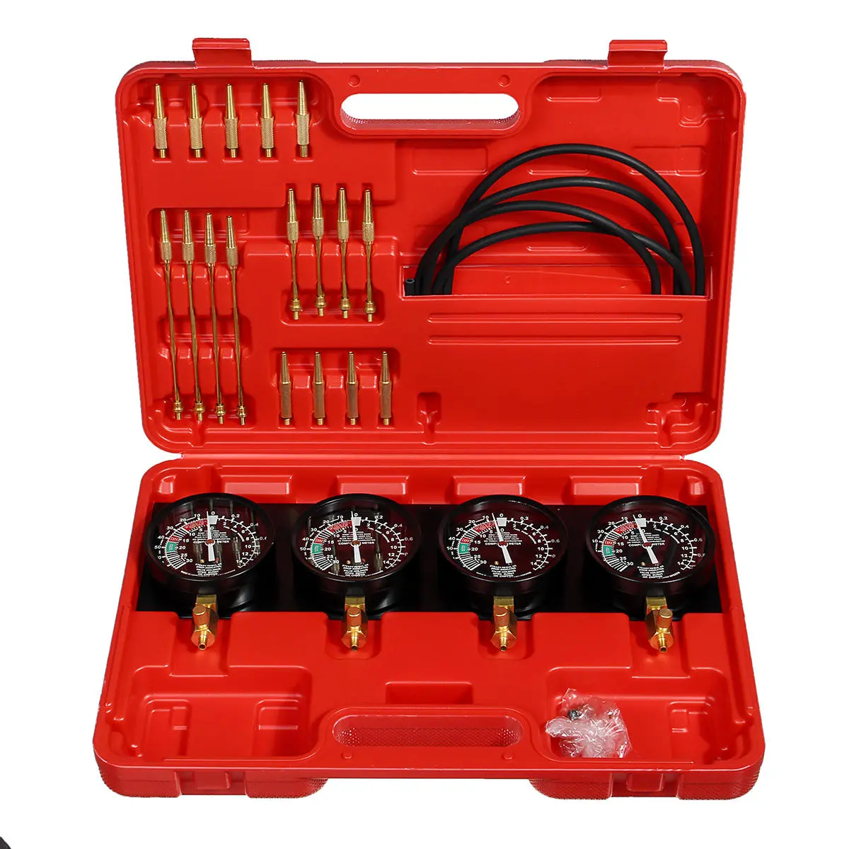 Descrizione:Questo kit ti consente di sincronizzare i valori dei 4 carburatori e regolarli/impostarli.Dotato di una banca di 4 manometri con valvole bloccabili che consentono all'utente di mantenere i valori del vuoto in uso.Manometri con diametro di 80 mm con piastra fissa e 4 tubi di gomma da 750 mm.-Supplied with set of long and short carburettor adaptors and connectors for easy access.-Questo kit di strumenti viene fornito in una custodia in plastica rigida con maniglia e chiusure frontali per un trasporto facile, un comodo stoccaggio e un'organizzazione.- Ogni manometro da 2" presenta letture da 0-76 cm/hg, una valvola di chiusura e tutti i componenti sono realizzati con finitura cromata di alta qualità anziché ottone per una maggiore durata nel tempo, una maggiore resistenza alla corrosione e una migliore precisione di flusso.Specificazione:Nome prodotto: Sincronizzatore del vuoto del carburatore per motocicletteMateriale: Metallo e PlasticaDimensioni scatola di plastica: 42,7 cm x 30 cm x 7,5 cm (LxPxH)Colore: Rosso e NeroTipo: Bilanciatore di strumentiMontaggio: Per testare la pompa del carburatore del carburante e controllare la trasmissione automatica con 2-4 carburatori.(La compatibilità è solo a scopo di riferimento. Si prega di confrontarla con la propria originale prima dell'acquisto!)Nota:Forniamo fotografie chiare, misurazioni quando possibile. Si prega di controllare il più possibile per assicurarsi che l'articolo sia quello che vi serve.2. Si prega di consen