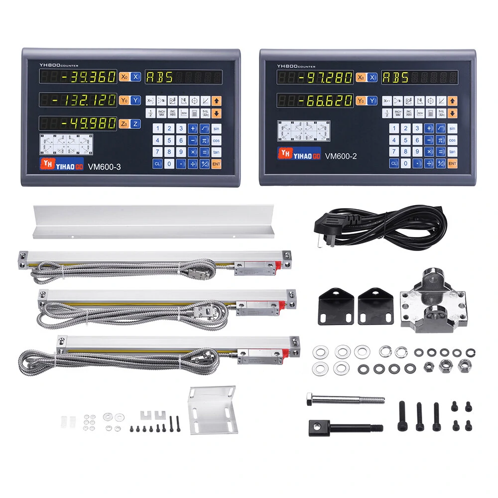 Description:YIHAOGD YH Lecteur numérique de fraisage CNC à grille à 2/3 axes DRO / KA300 TTL 70-970 mm Codeurs linéaires électroniques d'échelle linéaire pour tour. L'affichage numérique YIHAOGD YH peut correspondre à tous les types d'échelles linéaires YIHAOGD, à la fois de type KA300 et YE. Grand écran LCD, meilleur affichage que le tube numérique, pratique et pratique.Spécification:Paramètre du système d'affichage numérique à grand écran LCDModèle: 2 Axes/3 AxesPlage de tension: AC 100V~240V/50HZ~60HZAffichage acceptable du signal de lecture numérique: TTLConnecteur: DB9Résolution acceptable: 10μm, 5μm, 2μm, 1μm, 0.5μm.Taille:La longueur optionnelle est la longueur mesurée effectiveLongueur totale = longueur mesurée effective+106mmFonctions du système d'affichage numérique Dro Digital Readout :1:Effacement zéro2:Réinitialiser3:Mode mm/pouce4:Conversion de coordonnées ABS/INC5:200 ensembles de sous-données6:Mémoire hors tension;7:Centre de 1/28:Compensation d'erreur linéaire9:Mode veille10:Effacer 200 ensembles de données Sdm;11:Mode ABS/INC12:Calculatrice13:Forage de circonférence14:Forage de ligne oblique15:Usinage de plan incliné16:Usinage d'arc circulaire17:Fonction de tour (correspondance)18:Traitement progressif du lumen rectangulaire19:Filtrage numérique20:Filtrage des vibrations21: Fonction de tourKA300 5U Échelles linéaires TTL / Codeur linéaire / Capteur linéaire / Règle linéaire Paramètres1. Longueur de déplacement (mesure): 0-970mm2. Longueur totale: Longueur de