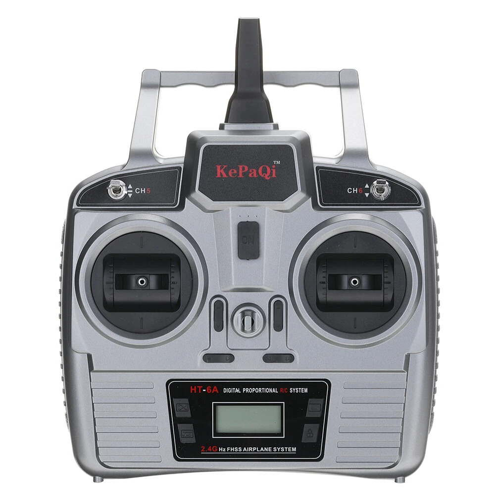 KPQRC HT-6A 2.4Ghz 6CH PWM FHSS 송수신기 F-06A가 포함된 RC 항공기, 자동차, 보트, 탱크용 리모컨설명:1. 2.4GHz 무선 대역은 이전에 사용되던 저주파 무선 대역과 완전히 다릅니다. 사용할 때 모델 제품이 시야 내에서 날아다니는지 확인해주세요.2. 사용 중에는 송신기 안테나를 꽉 쥐는 것이 엄격히 금지되며, 그렇지 않으면 무선 안테나 전파 신호의 품질과 강도가 감소되어 원격 제어 및 모델 컨트롤을 제어 할 수 없을 수 있습니다.기능:믹스 제어 기능 : 1/2CH 믹스 제어, 2/4 믹스 제어;2. 방향 조절: 1CH/2CH/4CH 설정에 맞춘 방향 조절량;3. 양극성 및 음극성 채널 : 전면 및 후면의 1CH/2CH/3CH/4CH 설정;4. 리턴 채널: 전압 리턴 및 신호 리턴;5. 잠금 기능: 키를 누를 때 잠금 가능;6. 제어 불능 시 보호 기능: 제어가 불능 상태가 되면 스로틀은 최저치로 동작합니다;7. 자동 종료: 조작 없이 15분 후에 자동으로 종료됩니다;8. 스로틀 경보: 시작할 때, 스로틀이 최저 값이 아니면 경고음이 울립니다;사양:적합 유형 : 모형 비행기 / 모형 자동차 / 배 / 탱크채널 수: 6리모컨 무게: 약 365g원격 제어 거리 : 지상에서 약 300m, 공중에서 800m전력 송신: ≈90mw변조 모드: GFSK스프레드 스펙트럼: FHSS응답 속도 : Pwm ≤ 20ms주파수 범위: 2.4GHz ISM 밴드 (2.4005-2.483.5GHz)수신 감도: <-97dbm수신기 전원 공급 범위: DC4-9V송신기 전원 공급 범위: DC4.5-9VKPQRC HT-6A 매뉴얼 여기를 클릭하세요포함된 패키지:1x KPQRC HT-6A 리모컨
