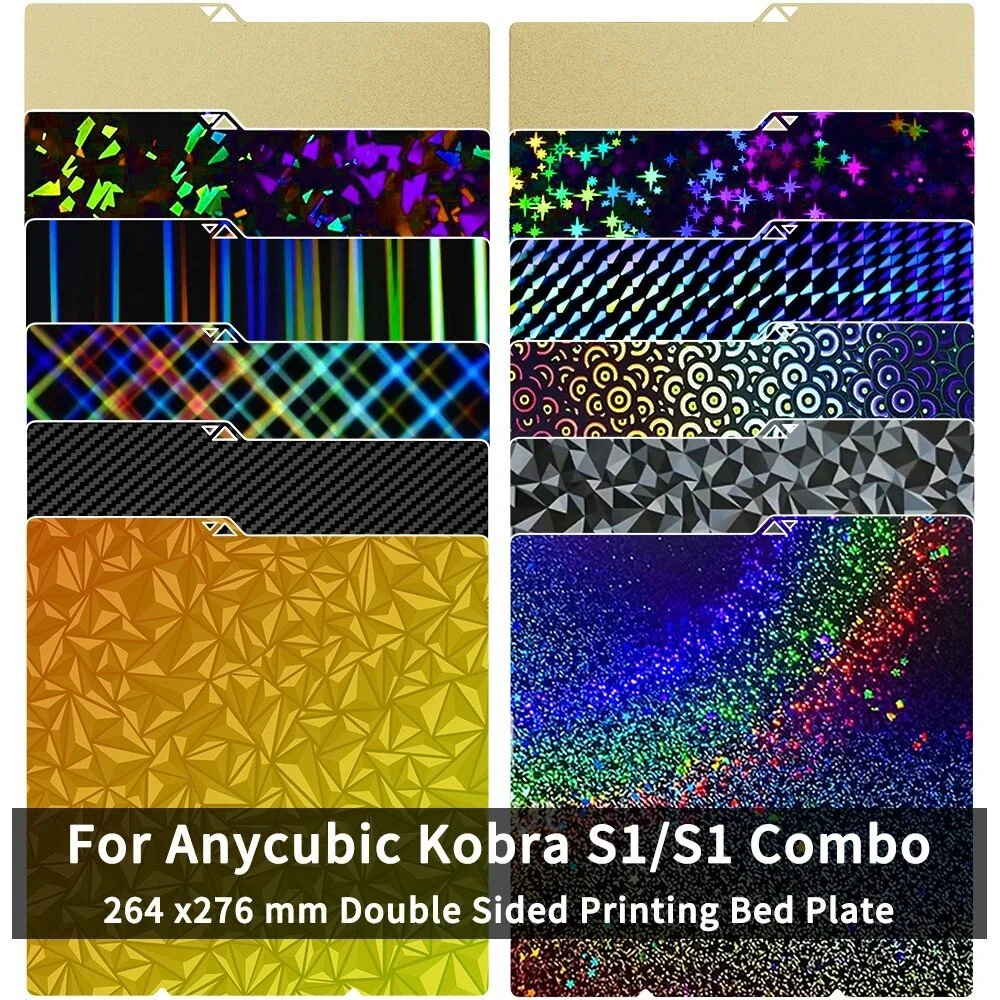 Especificaciones:Nombre del producto: Placa de impresión de doble caraTipo: PEI+PEI / PEO+PEY / PEY+PEY / PET+PEO / PEI+PET / PEI+PEO / H1H+H1HTamaño: 264x276mmCompatible con: Anycubic Kobra s1/ kobra s1 combo/s1cDoble cara: ambas caras pueden ser impresas.Características: Diseño de doble cara: ofrece superficies PEY lisas o superficies PEI texturizadas para aplicaciones de impresión versátiles.2. Eliminación de impresiones sin esfuerzo: Un ligero flexionamiento desprende las impresiones de manera limpia sin necesidad de herramientas adicionales.3. Excelente adherencia: el recubrimiento de PEI permite una adherencia óptima para múltiples tipos de filamento durante la impresión.4. Mantenimiento simple: la capa de PEI se puede limpiar y reutilizar fácilmente, asegurando un rendimiento duradero.5. Amplia compatibilidad: Apta para imprimir PLA, PETG, TPU, ABS y más en una variedad de rangos de temperatura.6. Efectos visuales únicos: Los patrones están diseñados para transferirse a las impresiones para obtener resultados llamativos y de aspecto profesional.Incluye:1x placa de impresión doble cara