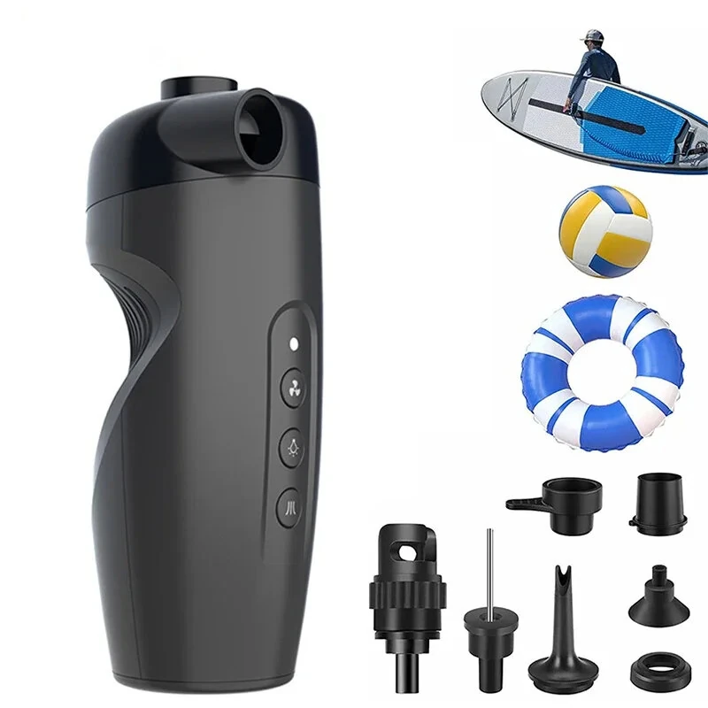 사양:이름: 야외 전기 공기 인플레이션 펌프 재료: ABS최대 전력: 15W최대 소음: 80-90db최대 진공 : ≤-60kpa전원 케이블 길이 : 30cm 전원 공급유형 : USB 충전 (Type C 포트)전압: 5V현재: 2A가스 튜브 길이 : 4.5cm인플레이션 압력: 저압 펌프 최대 인플레이션 압력 4500pa / 고압 펌프 20psi공기 용량: 저압 펌프의 최대 공기 용량은 350l/분이며, 고압 펌프는 8l/분입니다.배터리 용량: 3.7v/3000mAh충전 시간 : 약 2-3 시간작동 시간 : 저압 펌프는 1단 기어에서 약 60분 동안 작동하며, 저압 펌프는 2단 기어에서 약 35분 동안 작동하며, 고압 펌프는 약 90분 동안 작동합니다. (고압 펌프와 저압 펌프는 동시에 작동할 수 없습니다)제품 크기: 62x62x156mm색 박스 크기: 70x63x210mm특징:1. 휴대용: 소형으로 쉽게 이동 및 저장할 수 있습니다.2. 무선: 어지러운 케이블이나 전원 콘센트로 인한 걱정이 없습니다.3. 다용도: 보드 및 다양한 기타 팽창성을 가진 제품에 적합합니다.이중 기능 : 팽창과 방출 모두 가능하여 다양한 용도에 편의를 제공합니다.5. 빠른 팽창: 강력한 모터가 짧은 시간 내에 효율적으로 팽창됩니다.사용 방법:1. 첫 번째 버튼을 2초 동안 길게 눌러 저압 펌프의 첫 번째 기어를 작동합니다. 다시 짧게 누르면 저압 펌프의 두 번째 기어로 전환됩니다. 다시 짧게 누르거나 길게 눌러 저압 펌프를 차단할 수 있습니다. 작동 중에는 표시등이 파란색으로 켜집니다. 첫 번째 기어는 자동 모드로, 설정된 압력 도달 시 자동으로 최대 압력까지 증가합니다. 최대 압력에 도달한 후, 기계는 5분 동안 작동한 후 자동으로 종료됩니다. 두 번째 기어는 고 흐름 및 고 압력을 위해 사용됩니다. 두 번째 기어를 열면 기계가 최대 속도로 작동하며 5분 후 자동으로 정지됩니다. 인플레이터가 완전히 충전되지 않은 경우, 다시 2초 동안 눌러 기계를 시작하고 작업을 계속할 수 있습니다.2. 비상 조명을 켜려면 가운데 버튼을 2초 동안 누르고, 다시 한 번 눌러서 끌 수 있습니다. 비상 조명의 전력은 0.5W이며 밝기는 약 50~80루멘입니다.하단 버튼을 2초 동안 길게 눌러 고압 펌프를 켜고, 다시 짧게 누르거나 길게 눌러 끌 수 있습니다. 작동 중인 경우 표시등이 파란색입니다.4, 저전력 알림 기능 : 어떤 버튼 스위치를 열 때, 배터리 전력이 약 20% 남아 있을 때, 표시등이 빨간색 깜박임으로 알림 표시됩니다.5, 저전력 보호 기능: 배터리 전압이 3.0V보다 낮을 경우 작동이 강제로 중지되며, 표시등이 5초 동안 깜빡이고 꺼집니다. 기계를 깨우고 다시 작동을 시작하려면 충전해야 합니다.6. 충전 프롬프트 기능 : 충전 상태 표시기패키지에 포함되어 있는 것:1 X 무선 에어 펌프1 X USB 충전 케이블7 개의 공기 어댑터