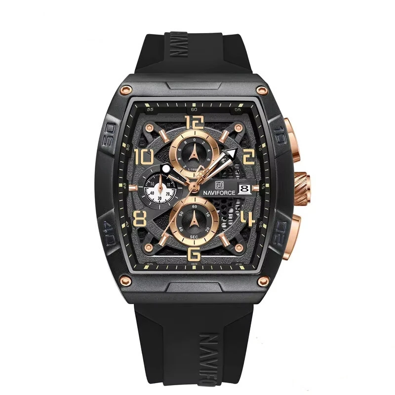 Especificaciones:Marca: NAVIFORCEModelo: 8052Material de la caja: AleaciónDiámetro de la caja: 44mmGrosor de la caja: 15mmMaterial de la banda: sílicaLongitud de la correa: 255 mm (incluida la hebilla)Ancho de banda: 26mmPeso: 99gCaracterística: visualización de la fecha, a prueba de golpes, cronógrafoIncluye: 1 x Mirar1 x Caja para relojesNotas:Debido a la diferencia de luz y configuración de la pantalla, el color del artículo puede ser ligeramente diferente a las imágenes.Por favor, tenga en cuenta una ligera diferencia de dimensiones debido a diferentes medidas manuales.