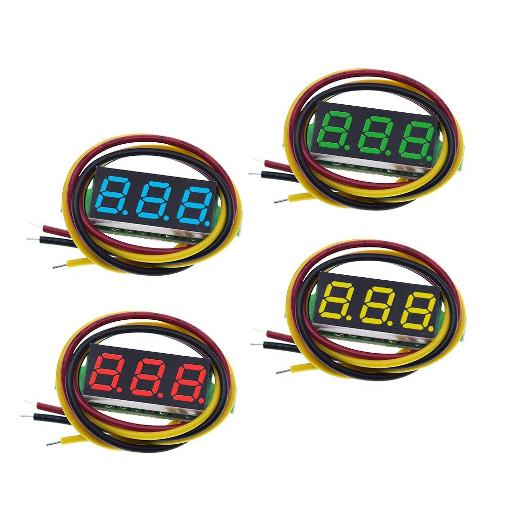Descripción:El voltímetro es pequeño, solo 0,28 pulgadas, rango DC DC0-100V, productos genéricos de 3 cables, para romper la rutina del voltímetro, es el diseño más reciente, puede funcionar directamente en circuitos de 5V, 9V, 12V, 24V y otros, sin regulación. Con tres cables, fácil acceso a la línea del coche/batería del coche/motocicleta, con función de protección de polaridad inversa, si se invierte la línea no se quema. Se utiliza para monitorizar el voltaje de la batería, conocer el estado del voltaje de la batería, también se puede utilizar para aplicaciones de medición de voltaje en otros productos.Especificaciones:Método de visualización: 0.28 LED, rojo, azul, verde, amarilloVoltaje de trabajo de 3 cables: 4.0~40V (con función de protección de conexión inversa)voltaje de detección de 3 cables: 0.0~100VVoltaje de trabajo: Medición de tasa: >200mS/tiempoPrecisión de medición: 3%Voltaje de trabajo bajo: +2.4V+40VTemperatura de funcionamiento: -10~+65°CHumedad de trabajo: 10-80% (sin condensación)Presión de trabajo: 80 ~ 106 kPaLuz solar: no exposición directaIncluye:1×Voltímetro digital de CC