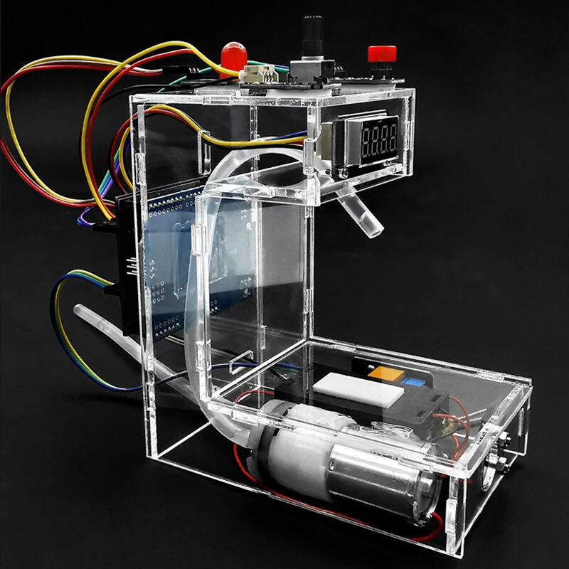 Especificaciones:Nombre del producto: Kit dispensador de agua inteligenteVoltaje de entrada de alimentación: 6-12VMétodos de suministro de energía:Fuente de alimentación TYPE-USB (5V)Toma de corriente de CC (7V-12V)Dimensiones:Altura: 143mmAncho: 78mmProfundidad: 120mmNota: Este es un kit de bricolaje, necesitas ensamblarlo y soldarlo.Características:1. Temporización ajustable de salida de aguaEquipados con un codificador rotativo de precisión, los usuarios pueden personalizar el tiempo de dispensación de agua de manera conveniente y eficiente.2. Diseño activado por toqueEl dispensador cuenta con un botón de encendido sensible al tacto, lo que permite un proceso de activación fácil y sencillo.3. Pantalla digital para el tiempo de dispensación de aguaSu módulo de pantalla digital integrada presenta el tiempo de dispensación de agua en dígitos claros y visibles, ofreciendo un mayor control y visibilidad.4. Botón de parada de emergenciaIncluye un botón de parada de emergencia dedicado, que permite a los usuarios detener inmediatamente la dispensación de agua en caso de situaciones imprevistas.5. Indicador de estado LEDEl dispensador está equipado con una luz LED para indicar el estado operativo, asegurando un fácil monitoreo de un vistazo.Paquete incluido:1 x Kit dispensador de agua inteligente