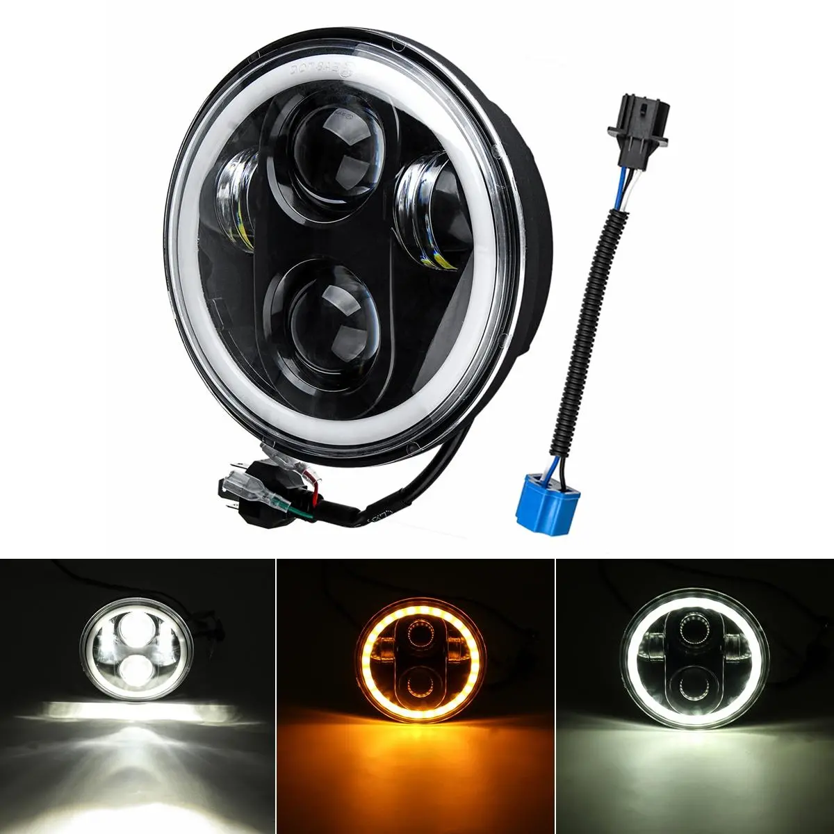 사양:제품 이름: 프로젝터 LED 헤드라이트소재: 내구성 있는 ABS와 LED셸 색상: 검정색빛 색상: 흰색과 노란색전압: DC12V인증: DOT, SAE수명: 50000 시간광원 전력: 75W방수 등급: IP68색온도: 6000K크기: 146mm/5.75" x 68mm/2.67케이블 길이: 230mm / 9.05수량: 1개 적합성:5.57" 헤드라이트를 가지고 있는 모든 스포츠터를 위하여5.75인치 LED 헤드라이트를 가진 하풀리 데이비드슨에게 할리데이비슨에 대해:VRSCD 및 VRSCDX 2006-2011용XG 2015년 이후에 대해XL 20004 이후XR2009-2013에 대하여1984-1999 FXSTS 및 FLSTS용FXCW/C, FXS, FXSB, FXSBSE, FXST, FXSTB, FXSTC 및 FXSTD 2000년 이후 모델FLSTSB 2008-2011 용FLSTSC 2005-2006을 위해2010-2012 FLSTSE 모델을 위해XL1200C 1996년 이후 모델용XL883C 1998년 이후에 대한FXDWG 1994-2008을 위해FXD, FXDL, FXDC, FXDB, FXD35, FXDSE, FXDF 2006년 이후FXR2, FXR3, FXR4 1999-2000에 대하여FXSTC 1984-1999용FXST, FXSTB, FXSTC 1999년 이후FXSTD 2000-2007에 대해VRSCB 2005에 대해 5.75인치 라운드 LED 헤드라이트를 장착한 트라이엄프 오토바이용스피드 트리플 2005-2010용Street Triple (둥근 헤드라이트 모델)용로켓 3/4 및 썬더버드를 위한 승리를 위한 오토바이인디언 스카우트 2015-2017용승리를 위한 옥타인 2017(호환성은 참고용입니다. 구매하기 전 원본과 비교해주십시오!) 특징:LED 헤드라이트는 다기능입니다 - 헤일로는 화이트 또는 안버로 설정할 수 있습니다. 안버는 방향 지시등 용이고, 화이트는 주간 주간등용입니다.보다 더 빠른 켜기 / 끄기 응답 시간, 운전 안전성을 향상시키기 위한 현란한 경고 효과.방수, 저전력 소비, 오래 지속되는.간단한 설치 - 플러그 앤 플레이. 포함된 패키지:1 x LED 헤드라이트1 x 케이블