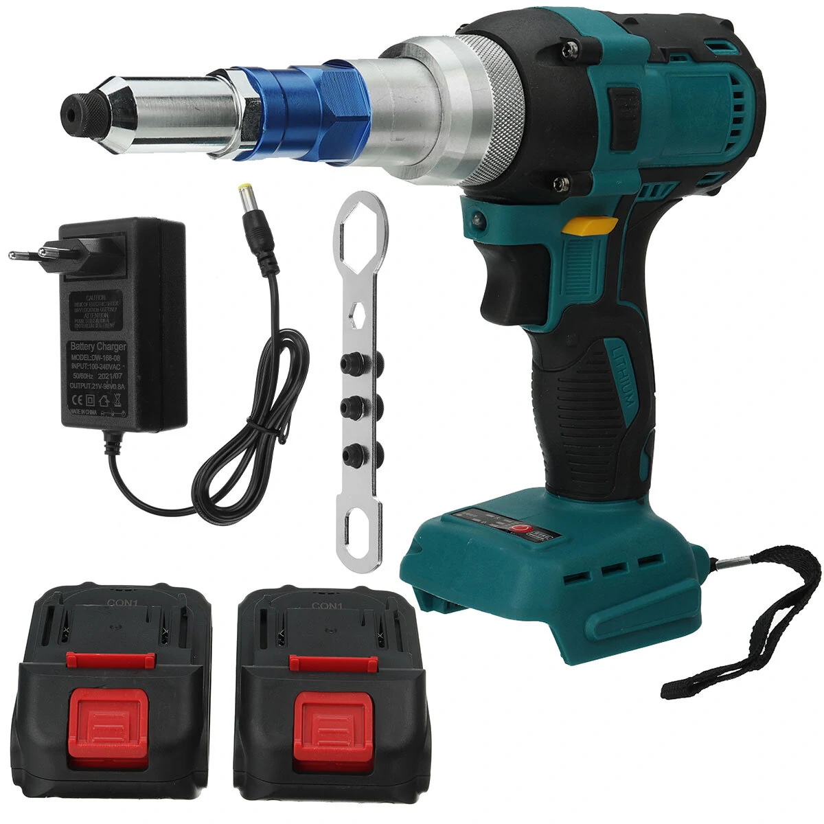 Rivettatrice a batteria senza spazzole 88VF Rivettatrice automatica per rivetti ciechi Riveter per batteria Makita18VNOTA: Il corpo è adatto anche per la batteria MAKITA18V!Specificazione:Tipo: AutomaticoMotore: Motore brushlessForza di trazione: 10000NSpecifiche applicabili per la rivettatura: 2,4 ~ 5,0 mmCoppia massima: 140 NmVelocità a vuoto: 0-1600 giri/minTensione della batteria: 88VFCapacità batteria: 10000mAhIngresso di potenza: AC 110-240VModello opzionale: Senza set di batterie/1 set di batterie/2 set di batterieCaratteristiche:Motore brushlessRispetto al motore spazzolato, non avrà scintille e non dovrai sostituire le spazzole di carbonio, offrendoti maggiore sicurezza e comodità. Il motore senza spazzole consente allo strumento di funzionare più fresco e del 50% più efficiente per una durata più lunga.【Operazione automatica】Operazione intelligente con un solo pulsante, semplice e veloce, richiede solo da 2 a 5 secondi per una singola operazione (a seconda dei materiali dei rivetti). Non è necessario trascinare tubi ovunque, si adatta dove si adatta un rivetto manuale, operazione senza sforzo con una sola mano, prestazioni perfette ogni volta.Basso rumore e alta performanceQuesta rivettatrice non ha il rumore di un compressore d'aria, offrendoti un ambiente di lavoro relativamente silenzioso, prestazioni potenti particolarmente adatte agli operatori con artrite.【Ampiamente utilizzato】La pistola per rivetti può essere utilizzata su chiodi di alluminio; adatta per i s