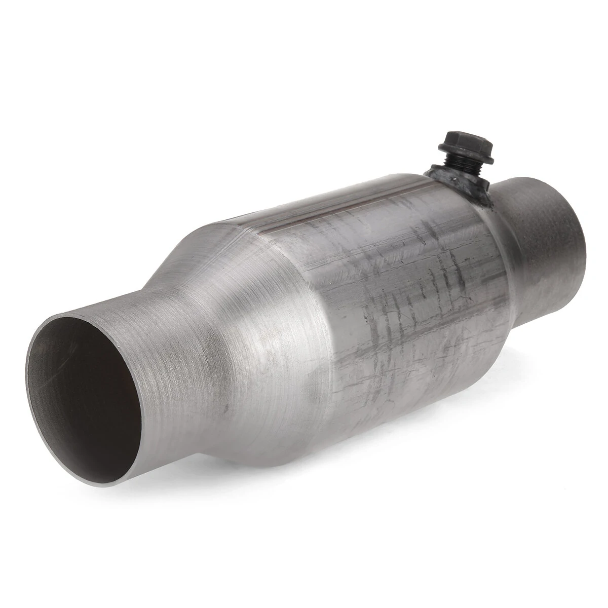 2 5 Inlet Outlet 400 cell Universal High Flow Weld On Catalytic Converter Stainless SteelAttention Due to increased emissions standards these items are not certified for sale in California New York Maine and Colorado If your vehicle is registered in California New York Maine or Colorado these items can not work on your vehicle Please check your registration states before you buy NOTE Customers strongly advised not to install such parts on vehicles that will be driven on public roads Specification Model Number K10747Product Name Catalytic ConverterBody Material Stainless SteelSubstrate material Ceramic 400 cellInlet Outlet Diameter 2 5 6 3cm ID Inside diameterOverall Length 11 28 cmBody Shape RoundOxygen Sensor Location PrePostPlacement on Vehicle Front Left Rear RightConnection Type Weld onFeatures 1 100 Brand new never used or installed2 It is resistant to thermal shock and cracking long service life 3 It is high corrosion and wear resistance 4 Main function is to convert toxic gases to harmless gases helps to purify treat car exhaust 5 By using it it can help to improve exhaust gas save horsepower and torque Great emissions control high efficient and work efficiently 6 Ideal for use on vehicles prior to 1998 Vehicles after 1998 that require an O2 PortPackage Included 1x 2 5 Universal Catalytic ConverterNote 1 We provide clear pictures measurements where possible Please check as much as possible to make sure the item is the one that you n