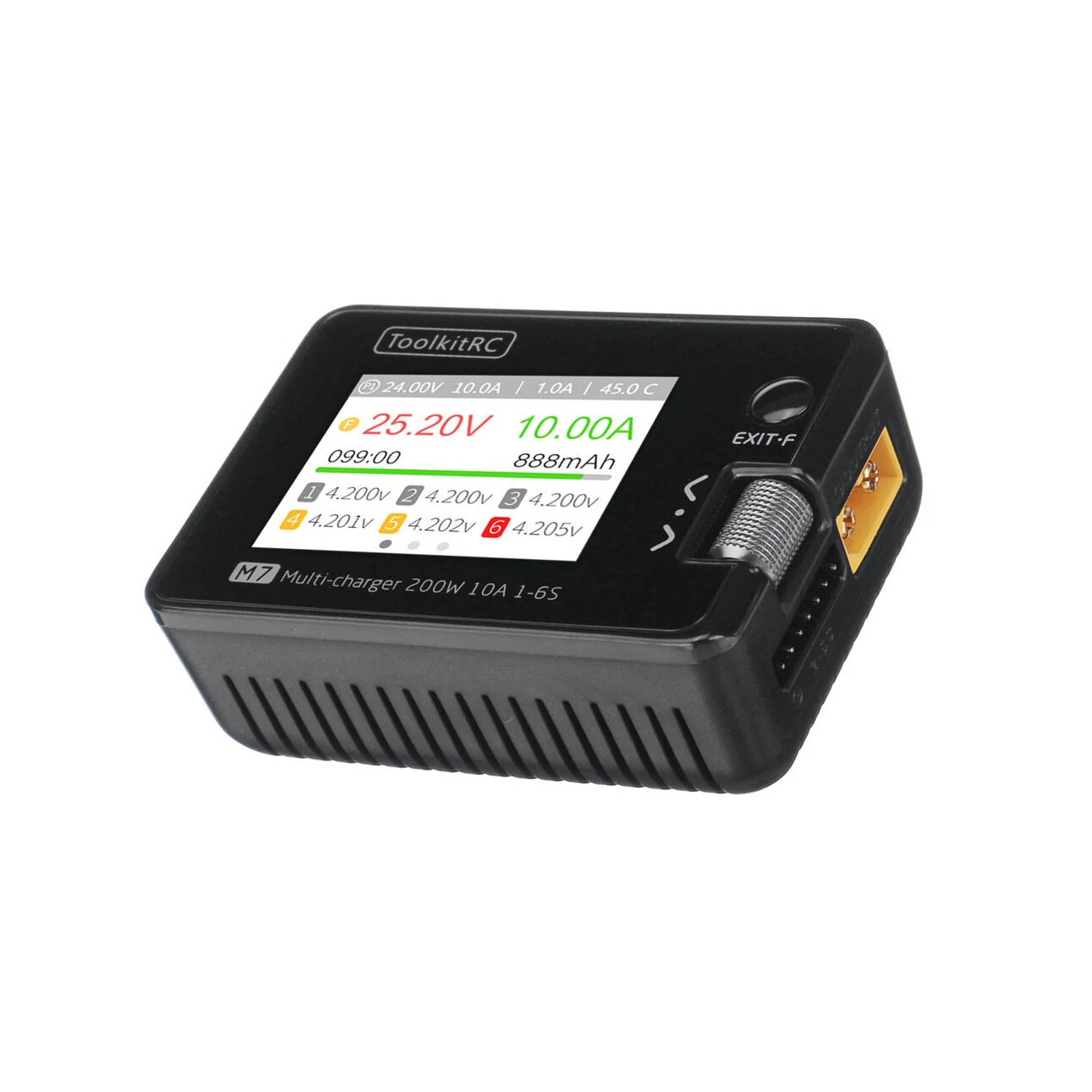 M7 ÖZELLİKLERİ:Ürün Boyutu: 73*51*27 mmÜrün ağırlığı: 90gPaket boyutu: 84*79*39 mmPaket ağırlığı: 150gLCD: IPS2,0 inç LCD 320*240 PikselGiriş gerilimi: 7.0-28.0V @MAX 12APil türü: Lipo LiHV LiFe Lion@1-6NiMh @1-16SPb @1-10SMevcut denge: 400mA @2-6SŞarj gücü: 200W @MAX 10ADeşarj gücü: 200W @MAX 10A Geri dönüşüm modu10W@3A Normal modUSB: 2.1A @5.0V veya YükseltmeInput:PWM: 880-2200us @20-400HzPPM: 880-2200us*8CH @20-50HzSBUS: 880-2200us *16CH @20-100HzGerilim: 1.0-5.0V @1-6SDahili direnç: 1-99mR @1-6SESC: 200W@10APWM ÇıkışıÇıktı:PWM: 500-2500us @20-1000HzPPM: 880-2200us*8CH @20-50HzSBUS: 880-2200us *16CH @20-100HzGüç kaynağı: 1.0-28.0V @ 1.0-10A mod:CC+CVAşırı Akım Kesme Süresi: Paket içeriği:1X ToolkitRC M7 Şarj Cihazı