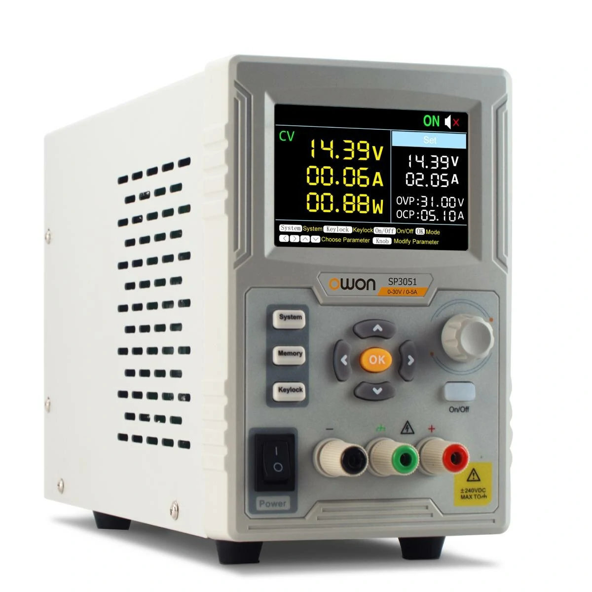 Caratteristiche:Corpo piccolo per un facile trasportoPotenza di uscita massima di 150W/300WDesign di alimentazione costante, che fornisce una combinazione di molteplici gamma di tensione e impostazioni di correnteBassa ondulazione/rumoreProtezione da sovratensione / sovracorrenteVentola con controllo intelligente della temperaturaSupporto alla comunicazione digitale RS232Specificazione:ModelloSP3051SP3101SP6101SP6053SP3103SP6103Uscita valutata(0°C-40°C)Tensione0-30V0-30V0-60V0-30V0-30V0-60VAttuale5A10A10A5A10A10ARisultatoPotere150W150W150W300W300W300WRegolazione di caricoTensione≤30 mVAttuale≤30mAPotereRegolamentazioneTensione≤ 20mVAttuale≤20mAImpostazioneRisoluzioneTensione10mVAttuale1mAReadbackRisoluzioneTensione10mVAttuale1mAOndulazione/Rumore(20Hz-20MHz)Tensione (Vp-p)≤30 mVp-p≤50mV p-p≤30 mVp-p≤50mV p-pTensione (rms)≤3mVrms≤5mVrms≤3mVrms≤5mVrmsCorrente (rms)≤30 mAp-pTempo di risposta≤1,0 msArchiviazione5 gruppi di datiTemperatura di lavoro0~40°CPacchetto incluso:1 x Dispositivo principale di alimentazione1 x Manuale utente1 x Fuse1 x Cavo di alimentazione EU1 x RS232