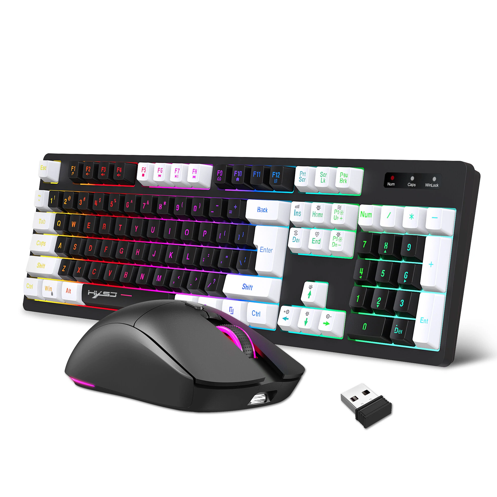 Açıklama:Fare parametreleri:IC: (PixArt) 3065Getiri oranı: 125HZHareket hızı: 28IPSYenileme Hızı: 3000FPSİvme: 10Gİşlem Modu: Opto-elektronikBağlantı: 2,4 GHz kablosuz iletişimGüç Türü: şarj edilebilir Type-C arabirimiAnahtar sayısı: 6 anahtarAnahtar ömrü: 10 milyon kez yaşam ses anahtarı.Aydınlatma: Renkli ışıkKablosuz mesafe: 10mPil kapasitesi: 500mAhÇözünürlük: 800/1200/1600 DPINominal gerilim/akım: 3,7V/60mAKlavye parametreleri:Özellikler: 104-TUŞLU RGB AYDINLATMALI 2.4G KABLOSUZ KLAVYEŞarj arabirimi: TYPE-CBağlantı yöntemi: 2.4G kablosuz iletişimParlak Tip: RGB parıltıÜrün tipi: Membran klavyeTuş Sayısı:104 TuşDüğme ömrü: 50 milyon kez veya daha fazlaPil kapasitesi: 1800 mAhSürdürülebilir iş: 20 saatÇalışma Gerilimi: 3.0VÇalışma akımı: 50mAAnahtar kapağı malzemesi: ABS iki renkli enjeksiyonŞarj hattının uzunluğu: 1.6mMouse Ağırlığı: 76gFare Boyutu: 125*64*40mmKlavye ağırlığı: 646gSistem uyumluluğu:IBM PC Win98SE/Me/2000/XP/VISTA/WIN 7/WIN10/WIN11 ve en son sistemlerle uyumludurFare Bağlantı Yöntemi:1. 2.4G kablosuz İletim Teknolojisi, kablosuz teknolojinin sağladığı kolaylıkta hızlı veri iletiminin keyfini çıkarın2. Doğru takip:Profesyonel IC konumlandırma hassasiyeti, 10M kablosuz alım mesafesi3. Rahat bir el hissi:Özel işlem ve ileri malzeme ile bu kablosuz fare size rahatlık hissi verirEnerji tasarrufu:Fare 8 dakikadan daha uzun süre kullanılmazsa, enerji tasarrufu yapmak için güç tasarrufu moduna geçecektir.5. Kompakt Alıcı:Kablosuz minik alıcı, pil yuvasının yanında