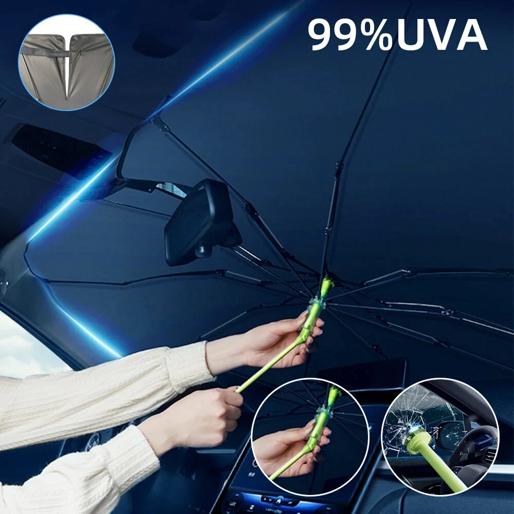 Özellikler:Ad: Araba Ön Cam Güneş ŞemsiyesiBoyut: 142cmx77cm/55.91inx30.3inRenk: SiyahÖzellikler:-- Araç cam güneşlik şemsiyesi dayanıklılığı artırmak için fiber cam kaburgalar ile güçlendirildi ve ek güç için 10 şemsiyeler çerçeve çubukları ile donatılmıştır. Ayrıca, araba içini serin ve rahat tutmak için soğutma kaplaması özellikleri bulunmaktadır.Ön cama takılan kaplama, beş katmanlı güneş koruma malzemesinden yapılmış olup güneş ve UV korumasını sağlar. Ek olarak, armatürün ve deri döşemenin solmasını ve çatlamasını engelleyerek aracın iç kalitesini korur. Araba güneş vizörü kolayca katlanabilir ve bir depolama çantası ile bir şemsiye gibi işlev görür. Bu tasarım, saniyeler içinde hızlı açma ve katlama kolaylığı sağlayarak günlük kullanım için uygun hale getirir ve arabada az yer kaplamadan kolayca saklanabilmesini sağlar.Ön cam güneşlik, 180° dönebilen ve ayarlanabilir/emniyetli sürüş için bükülebilir/fleksibl bir şemsiye sapına sahiptir. Ayrıca, kolu ucunda bir pencere çekici de bulunur, acil durumlar için.Araç güneş koruma şemsiyesinin boyutu 142cmx77cm/55.91inx30.3 inç'tir, bu nedenle arabalar, SUV'lar, sedalar, vanlar, kamyonlar vb. için uygun hale getirilmiştir. Özellikle açık bir otoparkta faydalı olup, yaz boyunca aracın serin kalmasını sağlamak için ön camı etkili şekilde örter.Paket içeriği:1 X Araba Cam Güneşlik Şemsiye1 X PU Deri Depolama Çantası