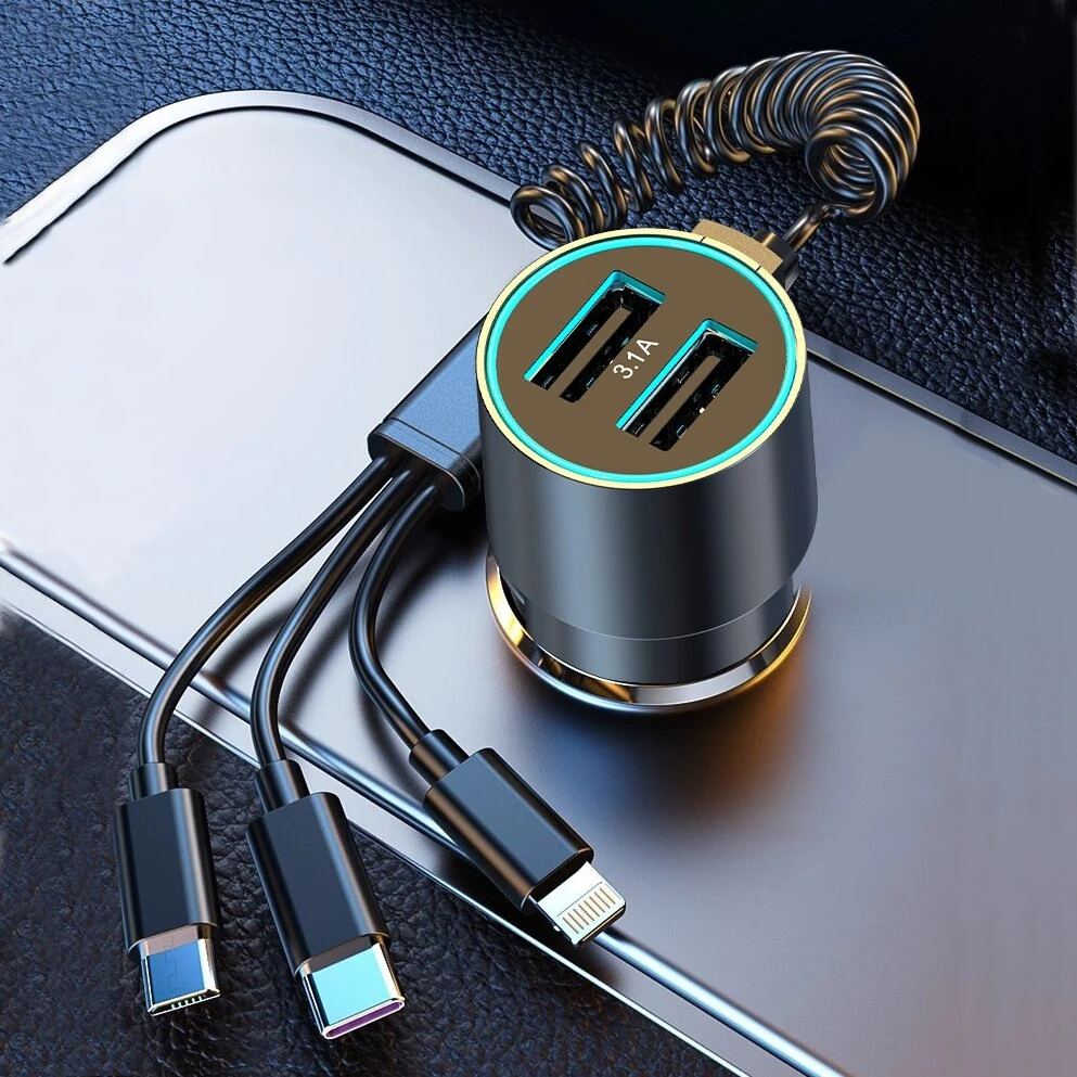 사양:제품 명: 차량 충전기재료: 알루미늄 합금DC 12-24VUSB 출력: 5V 3.1A파워: 100W유형-C 라인 출력: DC4.5V5A5V4.5A/9V2A/12V1.5A/10V4A/10V6.5/20V5A색상: 검정크기: 25.40x64mm특징:- 실시간 자동차 전압 감지,안전 보호,운전을 더 안전하게 만들며,자동차 배터리 전압의 건강 상태를 쉽게 파악할 수 있습니다.- 12-24V 전압 출력,자동차 및 트럭에 보편적이며,배터리 전압 12-24V 모델을 지원합니다.- 1.2미터 길이의 1대 3 5A 고속 충전 스프링 케이블이 1~3개 포함되어 있으며,외출할 때 케이블을 잊어버릴 필요가 없습니다. Apple,Android,TYPE-C 3두출력.- 인텔리전트 IC 빠른 충전,장시간 충전 시 과열되지 않으며 기기를 손상시키지 않습니다. 제품은 ABS 난연성 소재로 제작되어 있으며,전체 프로세스 동안 빠른 열 방출과 저온 충전을 제공합니다.이 차량 충전기는 초고속 충전 속도를 제공하여 언제 어디서나 장치를 신속하게 충전할 수 있습니다. 두 개의 포트를 통해 여러 장치를 동시에 충전할 수 있어 시간과 에너지를 절약할 수 있습니다.패키지에 포함되어 있는 것:1 x 100W 자동차 충전기