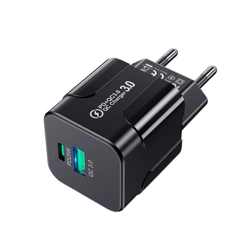 Specifications ModelBK317ColorBlack White Blue YellowMaterialPC FIreproofSize35 35 72 5mmInterfaceUSB A USB CInputAC 100 240V 50 60Hz 0 5AOutputUSB A QC3 0 3 6 6 5V 3A 6 5 9V 2A 12V 1 7AUSB C PD25W 5V 3A 9V 2 78A 12V 2AProtocolsPD QC3 0TypeEU PlugPower25WFeatures 1 Dual USB ports Equipped with a USB A and a USB C port providing simultaneous charging options for different devices 2 Fast charging The USB A port supports QualcommQuick Charge 3 0 technology delivering up to 80 faster charging speed for compatible devices 3 Power Delivery The USB C port supports Power Delivery 25W allowing for rapid charging of PD enabled devices 4 Compact design The BK317 charger has a compact size of 35 35 72 5mm making it portable and convenient for travel or daily use 5 Safety features Made with PC Fireproof material the charger ensures safety during charging and protects against overheating overcurrent and overvoltage Package Includes 1x BK317 Charger