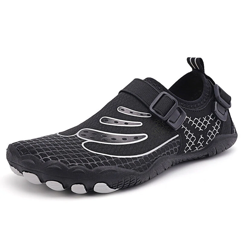 Specifications GenderUnisexProduct nameWading ShoesProduct materialAir Layer Printing Process Rubber Sole EVA Small FoamColorBlackSize41 45 Features 1 Versatile Design These scuba diving shoes are suitable for a variety of activities including water sports hiking city walking yoga cycling jumping rope and beach play 2 Drainage Outsole with Anti Slip Texture The swimming sneaker shoes feature a drainage outsole with anti slip texture effectively preventing slipping and keeping you safe while walking on wet surfaces The texture also enhances grip and stability on various terrains 3 Lightweight and Breathable These wading shoes have a lightweight and breathable design that allows for maximum airflow ensuring your feet stay cool and comfortable during long hours of activity 4 Toe Protection and Soft Insole The aqua shoes come with a toe protection design that helps to avoid injuries from accidental collisions The soft insole is designed to relieve pressure and provide comfort during extended use 5 Elastic Collar for Easy On and Off The beach water shoes feature an elastic collar that allows for easy on and off making them hassle free to wear and take off Package includes 1 Pair of ShoesNote Due to the different monitor and light effect the actual color of the item might be slightly different from the color showed on the pictures Thank you Please allow 1 2cm measuring deviation due to manual measurement