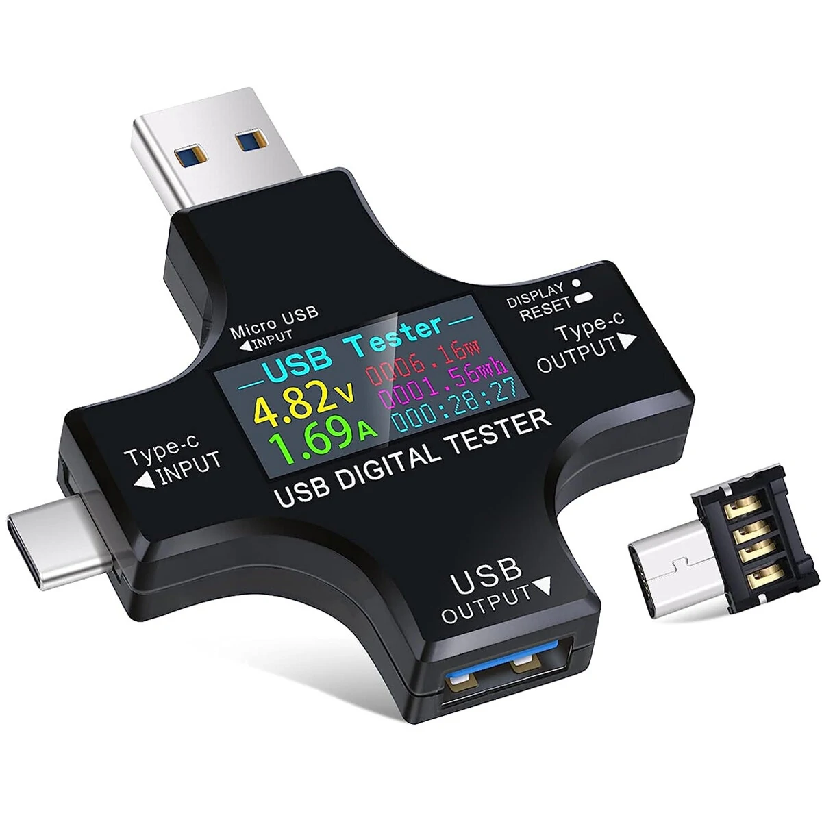 특징:UPGRADED MULTIFUNCTIONAL USB C 파워 미터: USB 또는 C타입으로 지원되는 장치의 충전 상태와 과정을 감지합니다. QC3.0, QC2.0 및 BC1.2를 지원합니다. 충전 속도와 품질을 검사하는 필수 가제트로, 충전기(벽/차량/태양 전지) 및 USB 충전 케이블의 충전 성능을 체크할 수 있습니다. 또한 무선 충전기의 최대 전류를 찾고, power bank의 용량과 전기 에너지를 테스트할 수도 있습니다.전문 안전 보호관 : 과전압 보호, 과전류 보호, 저전압 보호, 저에너지 보호 및 알람 시스템이 특징입니다. 이 업그레이드 된 USB Type C 테스터는 안전을 감지하고 기기를 최대한 보호할 수 있습니다. 전원이 갑자기 차단될 때 출력을 자동으로 차단하고 소리로 경고하면서 데이터를 저장합니다.다중 색상 스크린 디스플레이 모드: 새로 업그레이드된 버전은 8개의 LCD 주요 색상 스크린 디스플레이 인터페이스를 제공하며, 키를 눌러 디스플레이 인터페이스를 전환할 수 있습니다. 새로운 인터페이스 설정으로이 기기는 USB의 전압, 전류, 용량, 전력, 부하 임피던스, D+/D- 전압 등의 데이터를 모니터링 할 수 있습니다.다양한 응용 분야 : PD 프로토콜 빠른 충전 모드 측정 기술 덕분에, 이 새로운 멀티미터는 업데이트 된 iOS X 모바일 폰을 지원합니다. (지원) ios 8 / 8P / ios X의 빠른 충전, 29W 전력, 5V3A / 9V3A / 12V2.5A / 15V2A). 다른 타입 C 기기를 테스트하는 데 적용할 수도 있으며, Galaxy S10 / S9 / Note 10 +, ChromeBookPixel, OnePlus 등과 호환됩니다. 사양:USB 미터 테스터의 작동 지침다른 기능을 변경하려면 짧게 누르고, 확인을 위해 길게 누르십시오빠른 2번 누르기: 용량 재설정 (mAh)빠른 3번 누르면 전기 재설정 (Wh)퀵 4 프레스 : 타이밍 재설정 (00:00:00)빠른 5번 누르기: 그룹 번호 변경 (번호X, 총 10개의 데이터 그룹)현재 그룹(mAh, Wh, 00:00:00)의 용량, 전력 및 타이밍을 재설정하려면 길게 누르십시오전원을 켜기 전에 프레스를 눌러 시스템 설정 인터페이스에 들어가십시오.시스템 설정 인터페이스의 두 번째 줄을 길게 누르면 부하없는 상태에서 전류의 영점 보정이 이루어집니다.경고 인터페이스에서는 더블 클릭하여 추가하고, 세 번 클릭하여 값을 줄이고, 계속해서 추가하거나 줄이려면 길게 누르세요. 다중 고속 충전 프로토콜 자동 식별USB 테스터는 휴대폰에 안전한 충전을 제공하고 실시간으로 충전 데이터를 모니터링합니다. QC3.0 지원 (3.8V~12V, +/- 0.2 단계)QC2.0 지원 (5V/9V/12V/20V)빠른 충전 지원Android BC1.2(5V)/DCP/AFC 지원APPLE 2.4A/2.1A/1A/0.5A 지원HUAWEI FCP 9V/2A, SCP 4.5V/5A 지원MTK-PE (5V / 7V / 9V / 12V) 지원 포함된 패키지:1 X Type-C PD 테스터m