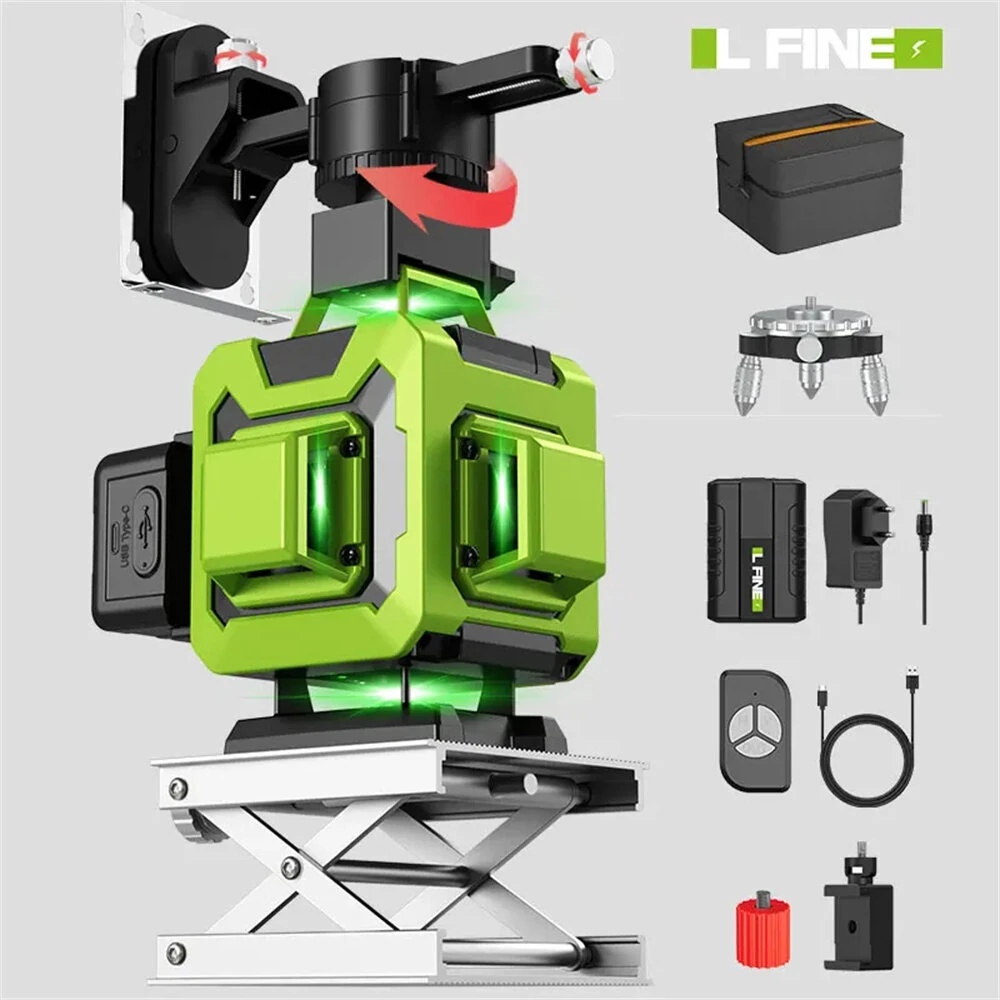 Özellikler:Öğe Model Numarası: Lfine 16 hat lazer seviyesiTip: Dikey ve Yatay LazerÖlçüm Modeli: 16 satırHassasiyet: 7m'de 1mmDalga boyu: 515nmPil: 4400mAh şarj edilebilir pilPil Ömrü: 6 saate kadarFiş Türü: ABSertifika: CER,KCOpsiyonel Tip: 1 Pil / 2 Pil Özellikler:Kapsamlı 360° Düzen: Tavan kurulumu,duvar hizalamaları ve karoların montajı için tam kapsama sağlayan dört 360° lazer ışını ile donatılmıştır.Geliştirilmiş Pil Ömrü: 4400mAh şarj edilebilir pil ile donatılmış,6 saate kadar çalışma süresi sunarak verimli çalışma oturumlarını garanti eder.Çok yönlü işlevsellik: Üst yatay çizgi,tavan montajlarına yardımcı olurken,360° zemin lazer çizgisi fayans yüzeyler için idealdir ve dikey çizgiler kare bir düzen oluşturur.Kullanıcı Dostu Tasarım: Yüksekliği 1" ile 3.54" arasında olan engellerin üzerinden geçebilen bir kaldırma tabanı içerir,bu da düzenlerin görselleştirilmesini ve tamamlanmasını kolaylaştırır.Hassasiyet ve Mükemmellik: 7m'de 1mm hassasiyetle yüksek doğruluk sağlar,net projeksiyonlar için 515nm dalga boyuna sahip yeşil lazer teknolojisi ile güçlendirilmiştir. Paket içeriği:Tip A:1 x Lazer Seviye1 x Alüminyum Dönüş Tabanı1 x Üst Duvar Destegi1 x Demir Levha1 x Küçük splint1 x Uzaktan Kumanda1 x Adaptör1 x Kaldırma Platformu1 x Taşıma Çantası1 x Şarj Edilebilir Pil1 x Şarj Adaptörü1 x Kullanıcı Kılavuzu B Tipi:1 x Lazer Seviye1 x Alüminyum Dönüş Tabanı1 x Üst Duvar Destegi1 x Demir Levha1 x Küçük splint1 x Uzaktan Kumanda1 x Adaptör1 x Kaldırma Platformu1 x Taşıma Ç