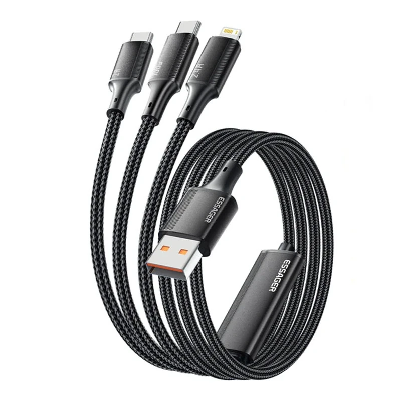사양:브랜드ESSAGER모델ES-X50재료알루미늄 합금, 24 직조 PP 실색깔검정/파랑케이블 길이1.2M전력/전류100W/7A입력 인터페이스USB-A출력 인터페이스Micro/iP/Type-C데이터 전송Type-C만 지원호환되는 장치스마트폰, 태블릿, 노트북특징: 1. 높은 전력과 전류: 이 케이블은 최대 출력 100W와 7A의 전류를 지원하여 빠르고 효율적인 충전 및 데이터 전송이 가능합니다.2. 다중 출력 인터페이스: 이 케이블은 스마트폰,태블릿 및 노트북과 같은 다양한 장치와의 호환성을 제공하는 Micro,iP 및 Type-C 출력 인터페이스를 갖추고 있습니다.3. 내구성 있는 디자인: 프리미엄 알루미늄 합금과 24개의 꼬인 PP 실로 제작된 이 케이블은 견고하고 오래 지속되며 긴 수명과 마모 저항성을 보장합니다.4. 빠른 데이터 전송: Type-C 출력 인터페이스는 빠른 데이터 전송을 지원하여 장치 간에 파일을 신속하게 동기화하고 전송할 수 있습니다.5. 넓은 호환성: 이 케이블은 스마트폰,태블릿,노트북을 포함한 다양한 장치와 호환되며,일상적인 사용을 위한 다재다능한 옵션입니다.포함된 패키지:1x 케이블