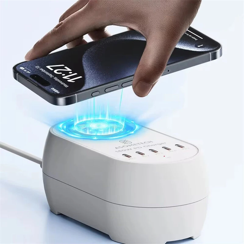 사양:제품명: GaN Tech 140W 5포트 USB PD 충전기유형: 15W 무선 충전기가 포함된 데스크탑 충전 스테이션총 출력: 140W 최대110-240V~50/60Hz 1.5A출력 포트: 5 x 타입 C + 1 x 무선 충전포트 사양:PD1: 100W (5V3A/9V3A/12V3A/15V3A/20V5A,PPS: 3.3V-21V5A)PD2: 30W (5V3A/9V3A/12V2.5A/15V2A/20V1.5A,PPS: 3.3V-11V3A)PD3: 30W (5V3A/9V3A/12V2.5A/15V2A/20V1.5A,PPS: 3.3V-11V3A)PD4: 30W (5V3A/9V3A/12V2.5A/15V2A/20V1.5A,PPS: 3.3V-11V3A)PD5: 30W (5V3A/9V3A/12V2.5A/15V2A/20V1.5A,PPS: 3.3V-11V3A)무선 충전: 15W / 10W / 7.5W / 5W특징:1. 고출력 충전: 총 140W 출력을 제공하며, PD1을 통해 최대 100W 전력 공급을 지원하고 다른 포트를 통해 여러 개의 30W 출력을 제공합니다.2. GaN 기술: 더 효율적이고 시원한 작동을 위한 혁신적인 질화 갈륨(GaN) 기술을 활용합니다.3. 다재다능한 충전 옵션: 5개의 USB Type-C 포트와 15W 무선 충전 패드가 장착되어 있어 다양한 장치를 동시에 충전할 수 있습니다.4. 넓은 호환성: 스마트폰(iPhone,Samsung,Xiaomi),태블릿 및 노트북을 빠르게 충전하는 데 이상적이며 다양한 전력 요구 사항을 수용합니다.5. 스마트 전력 분배: 지능형 전력 분배가 모든 연결된 장치에서 최적의 충전 성능을 보장합니다.패키지에 포함된 것:1 x GaN Tech 140W 5포트 USB PD 충전 도크